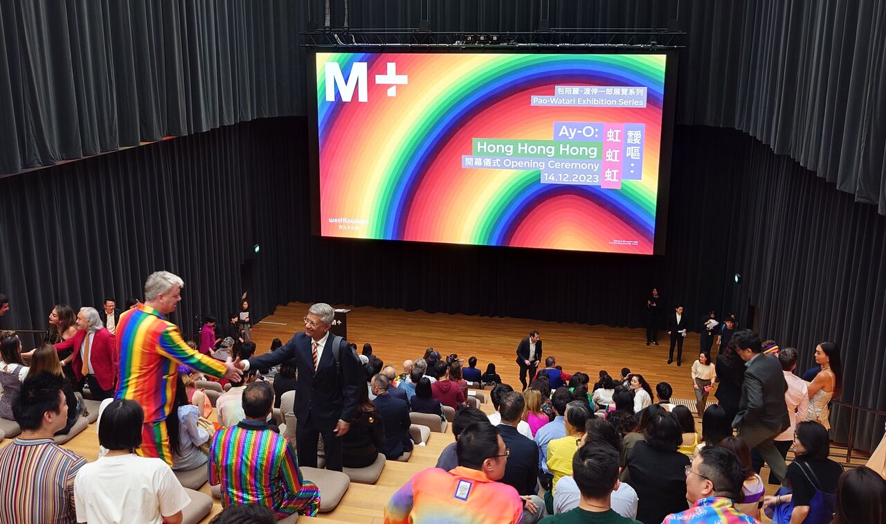 香港は、1997年にイギリスから中国に返還されたが、M+においては西欧的な自由なスタイルが健在で、12月15日に開催された「靉嘔:虹虹虹」展のオープニングセレモニーでは、カジュアルな服装とスニーカーで参加する若い世代も多かった。