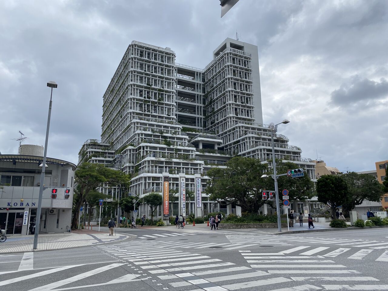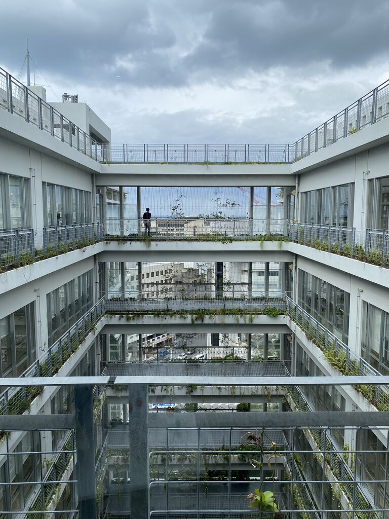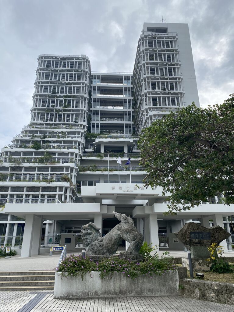 まずは国場幸房設計の[那覇市役所](2012年竣工)を訪ねました。高層ビルがガタガタガタと崩れ落ちたような綺麗だけれど荒々しさもあるインパクト大の建築。