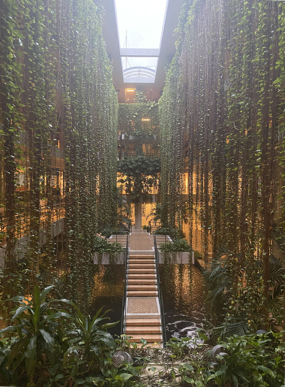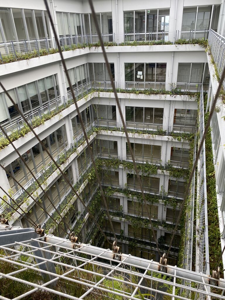 建物の真ん中は贅沢にも大きく吹き抜かれ、回廊できるようになっており、働いている人々が渡り廊下に出て外を眺めたり、煙草をふかしている人がいて気持ちよさそうでした。