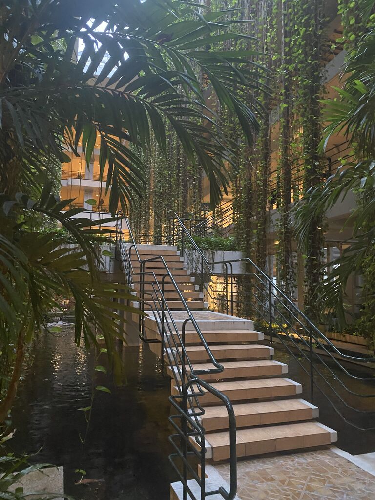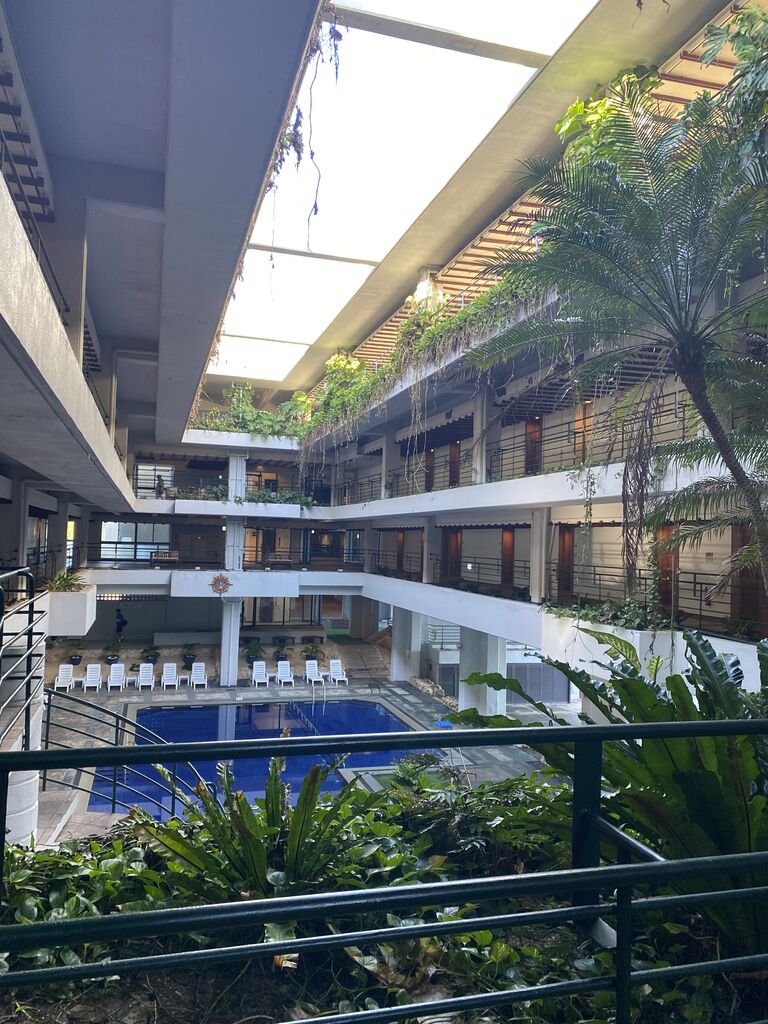 スリランカの建築家・ジェフリー・バワの「熱帯建築」を想起させる建築(行ったことはありませんが)。築50年弱なので、緑も生い茂り、ジャングル化された屋内。個室以外はほとんど外に開放的されています。プライベートビーチあり、プールありで、一人で来るのはもったいなかった。次回は家族旅行で泊まりたいものです。