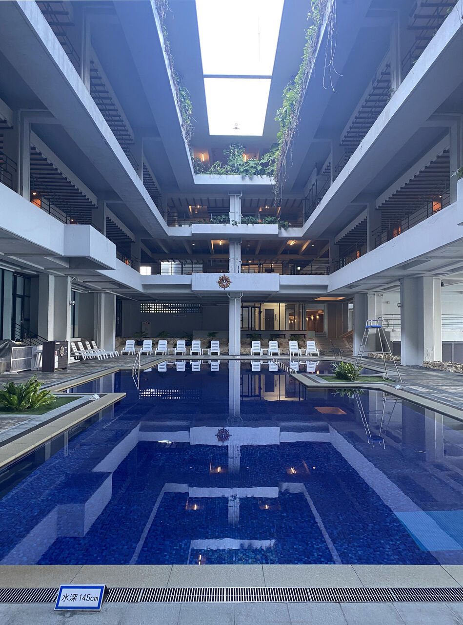 こちらも国場幸房設計です(1975年、2023年リニューアル)。沖縄にはたくさんのリゾートホテルがありますが、このホテルはその先駆けのリゾートホテルだそうで、ドコモモジャパンにも選定されています。