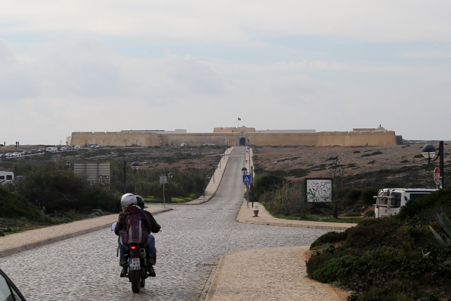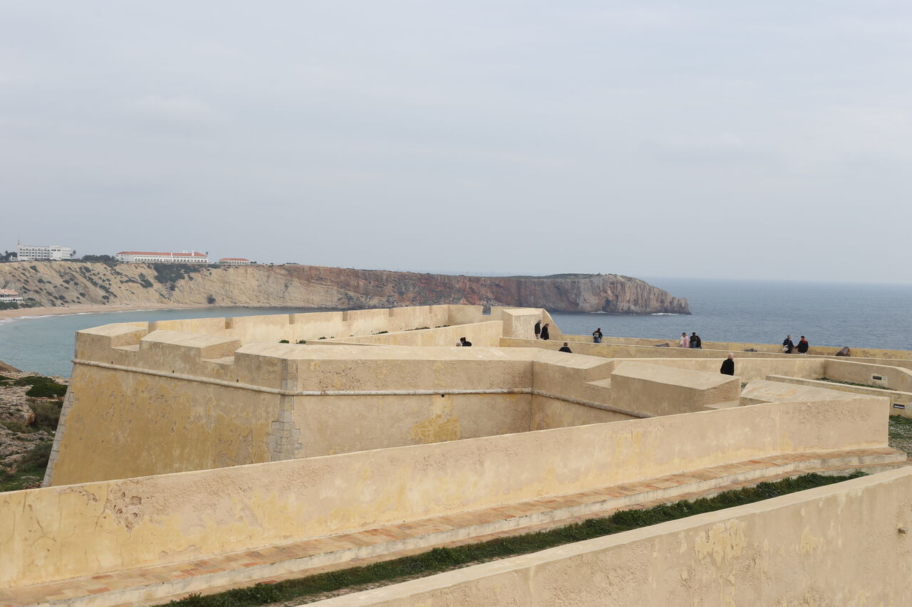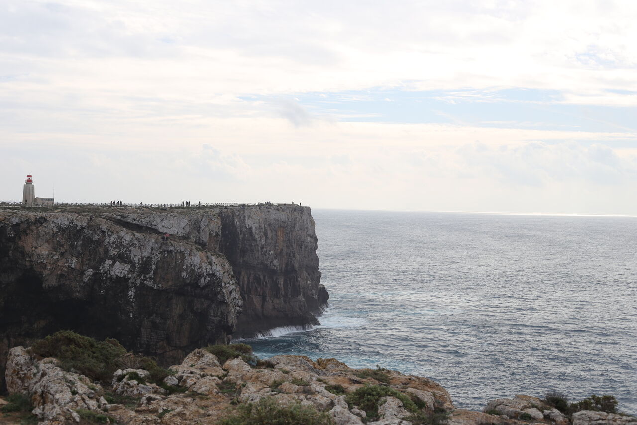 サグレス岬はアプローチがいい。2本のまっすぐな道が、南下するにつれて漏斗のように近づいていって、出合う点にサグレス要塞の平たい壁がある。まるで今までユーラシア大陸で背負ってきた悲喜こもごもを禊ぐフィルターのようだ。鳥居をくぐるようにその壁を通過すると、最果ての岬にも関わらずどこか牧歌的な風景が広がる。音がしない。起伏のないテーブル状の大地の突端まで行くとかなり唐突に断崖になる。その角度はほとんど90°。夢から醒めたように、急に海になる。