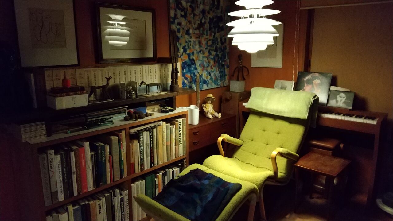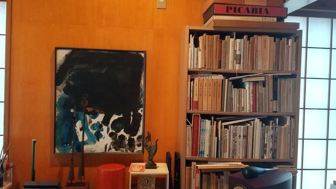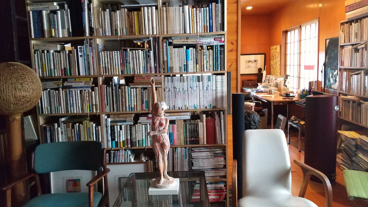 今もそうですが、私は、本は何よりのインテリアだと思っていまして、本の無い部屋はどうも殺風景な感じがしてならないのです。本のある家には若い頃から憧れていて、瀧口修造 (1903-1979) の書斎を撮った大辻清司 (1923-2001) の写真がいつも念頭にありました。また、瀧口修造とアンドレ・ブルトン (1896-1966) の「初めての再会」シーンに写っているブルトンのコレクションには相当なカルチャーショックを覚えたものでした。芸術や文学なんてものじゃなくて、そのインテリアの方に憧れてしまいました。何ともやるせない価値観を持ったものです。