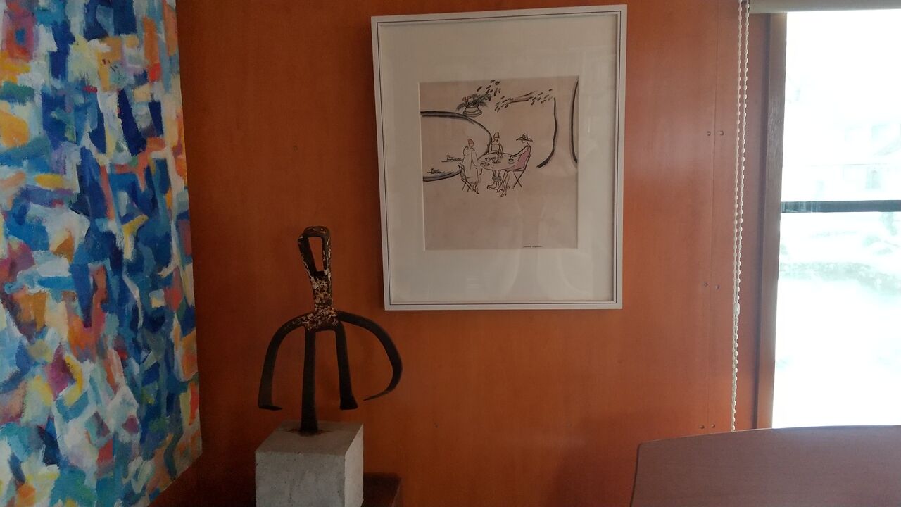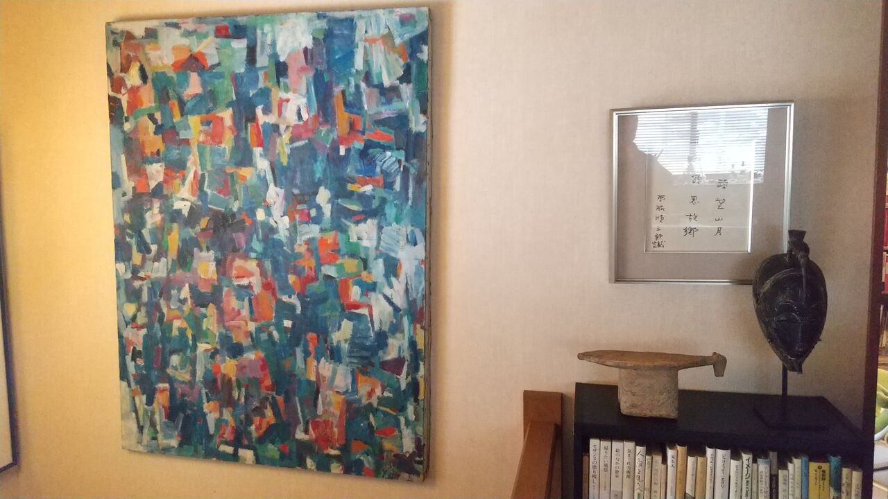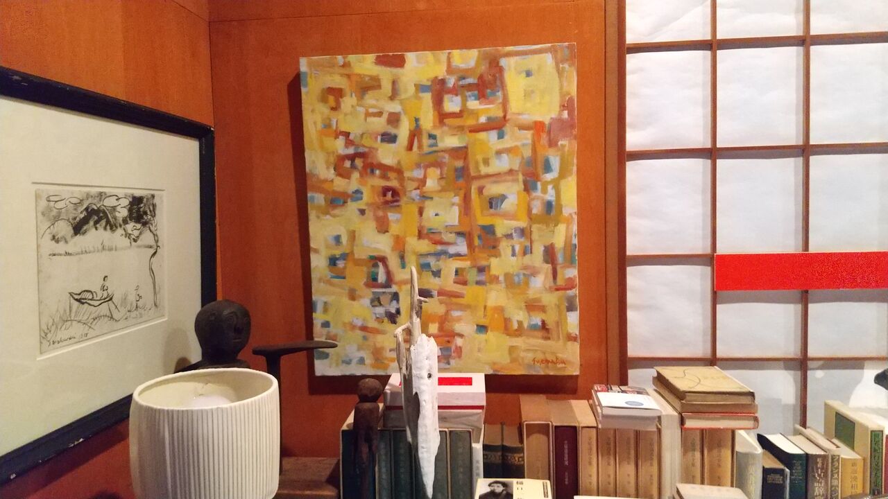 家の中にはアチコチの壁に絵を掛けています。また本もいろいろあるのでやっぱりアチコチに並べたり積んだりしています。掛け変えや並べ変えも気が向いた時にしますので、季節やなんかは全然考慮しません。これもまた楽しからずや、です。