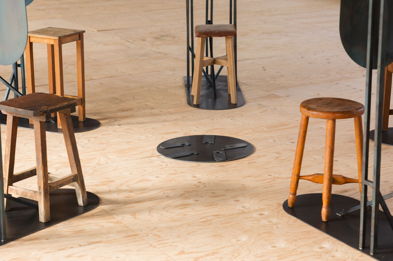 とはいえ、もし5つの席があるからと言って、5人が座っていないといけないかといえばそうではありません。たった一人で街の喫茶店に行き、店内には自分の他に客は誰もいなくてガランとしていても、そのうち誰かお客さんは来るのだろうと、何となくカウンター席の端に座ってコーヒーをすすりながら、隣に並ぶ空席の椅子を眺めたりすることがあります。椅子というのはとても奇妙なもので、いまそこに誰も座っていなかったとしても、ちょっと前に誰からが座っていたのかもしれない、あるいは数分後には誰かが座り始めるかもしれない、という風に自分がその椅子の前にいない時の風景を想い起こさせてくれることがあります(もし、椅子の座面がちょっと凹んでいたりしたら、なおさらです)。椅子の上に誰も居ないことが、返って誰かのかつての/これからの存在を想起させます。ある場所にたった一人でいた時の、他の誰かの不在による複数性の予感。そんなふうに意識が少しだけ広がっていく様を、他者との「連帯」とまでは実感を持って言うことはできないとも思ったので、「連担」という言葉で言い表せないかと考えています。連担とは、主に都市計画などでの土地の連なりを示すときに使われる固そうな言葉ですが、連帯や連携、あるいはもしかすると連続といった言葉よりもよりモノゴトの関係を組み立てる上での嘘偽りのない実直な言葉な気がしているのです。