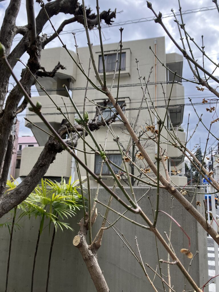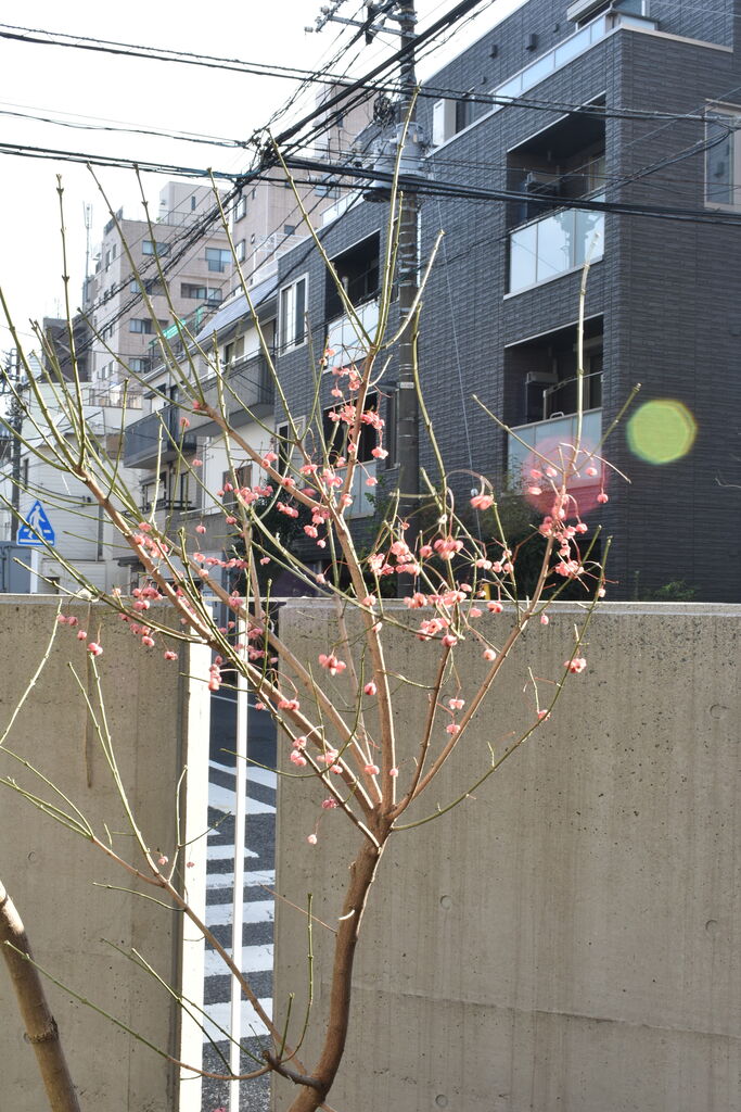また、昨年秋には瑛九のアトリエこと「ミーニョとヒーチョの家」が取り壊されるというショッキングな出来事もありました。詳しくはスタッフかばたのブログをお読みいただければと思いますが、そんなこんなで浦和から駒込へとやってきたのが庭のマユミの木です。