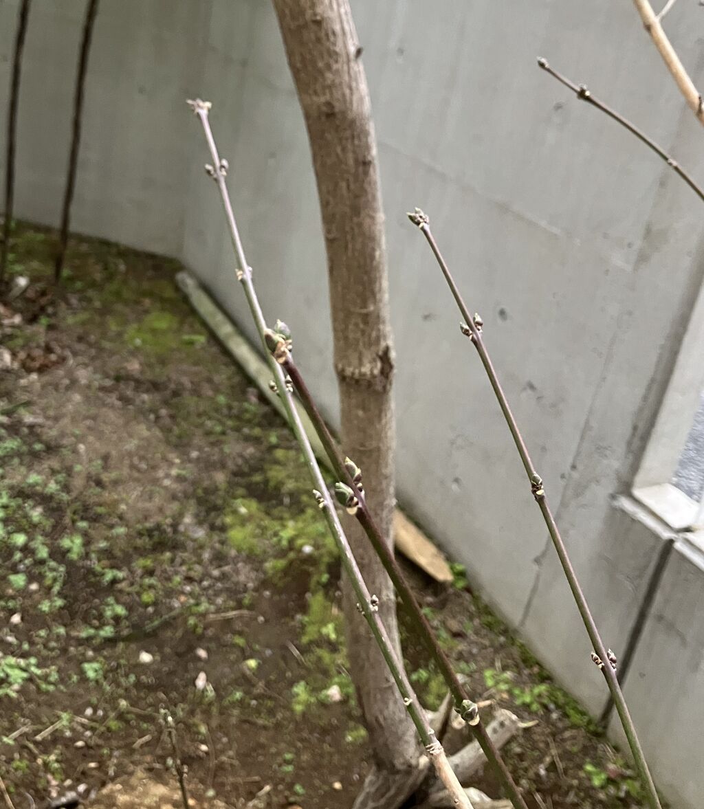 雪の降る日にもピンク色の実をつけていたマユミですが、最近その実も枯れ、枝先に冬芽が見られるようになりました。春から順調に葉をつけ、花を咲かせてくれることを願うばかりです。