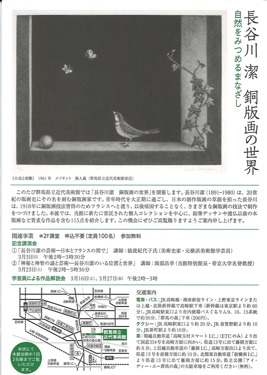 長谷川潔の銅版画など1914~1971年までの115 点を展示する展覧会が群馬県立近代美術館で開催されています。