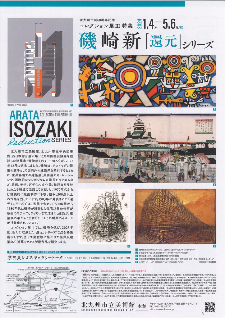北九州市立美術館のほかにも、磯崎先生による3つの公共建築を有する北九州市。ゴールデンウィークまでの会期にあわせて、建築ツアーを組まれてみてはいかがでしょうか。