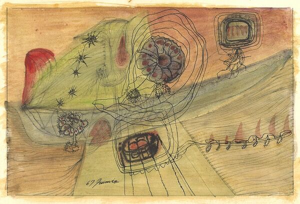 難波田史男 (作品 5) 1967年 紙、水彩、インク