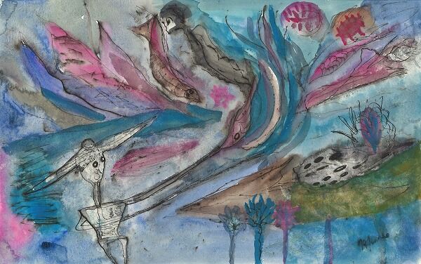 難波田史男 《風のように》 1971年 紙、水彩、インク