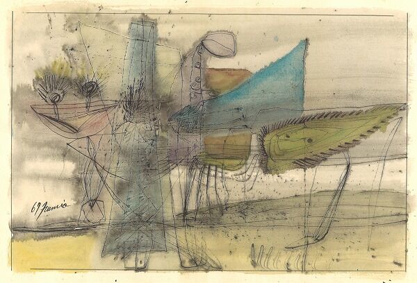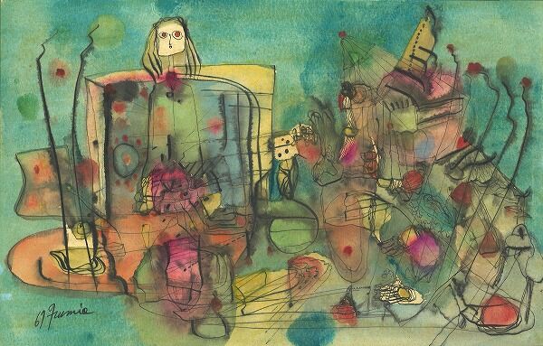 難波田史男 《幻想 16》 1962年 紙、水彩、インク