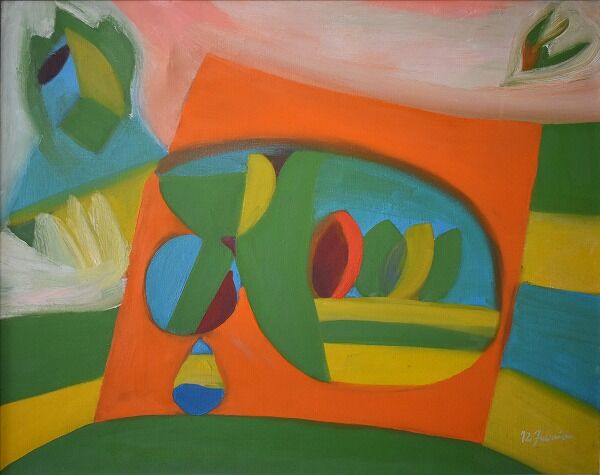 難波田史男 《田園》 1972年 キャンバス、油彩 52.0×64.0cm サインあり