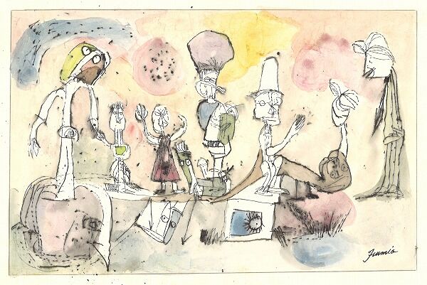 難波田史男 《やさしい人々の住む町》 1973年 紙、水彩、インク
