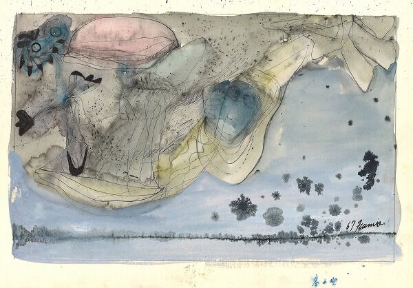 難波田史男 《空》 1972年 紙、水彩、インクイメージサイズ:24.0×33.5cm/シートサイズ:27.0×37.5cm サインあり
