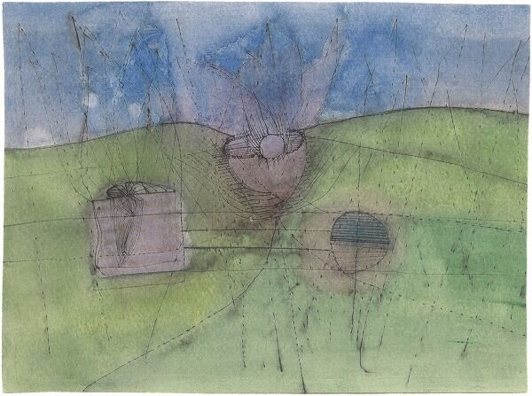 難波田史男 《思い出の原っぱ》 1971年 紙、水彩、インクイメージサイズ:20.5×27.5cm/シートサイズ:20.5×27.5cm 裏に印あり