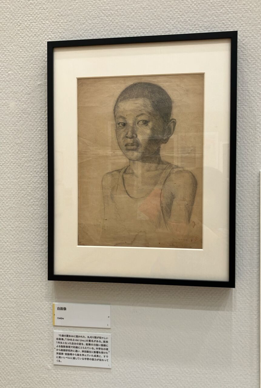展示室の最後に飾られた年表には、出来事だけでなく史男氏の人柄が感じられるエピソードや本人の言葉が多数引用されています。作品を観ているうちに浮かび上がってきたキーワード(音楽、線、太陽、宇宙、生と死……)がご本人の言葉で肉付けされていくような内容で、まだまだ知識の浅い自分のような人間も、グッとその魅力に引き込まれる感覚を抱きました。展示室の最後に飾られた、難波田龍起氏による1974年(史男が亡くなった年)の作品《幻》《幽》には言い表しがたい迫力があり、その余韻を全身で感じながら会場を後にしました。