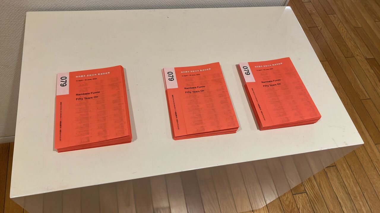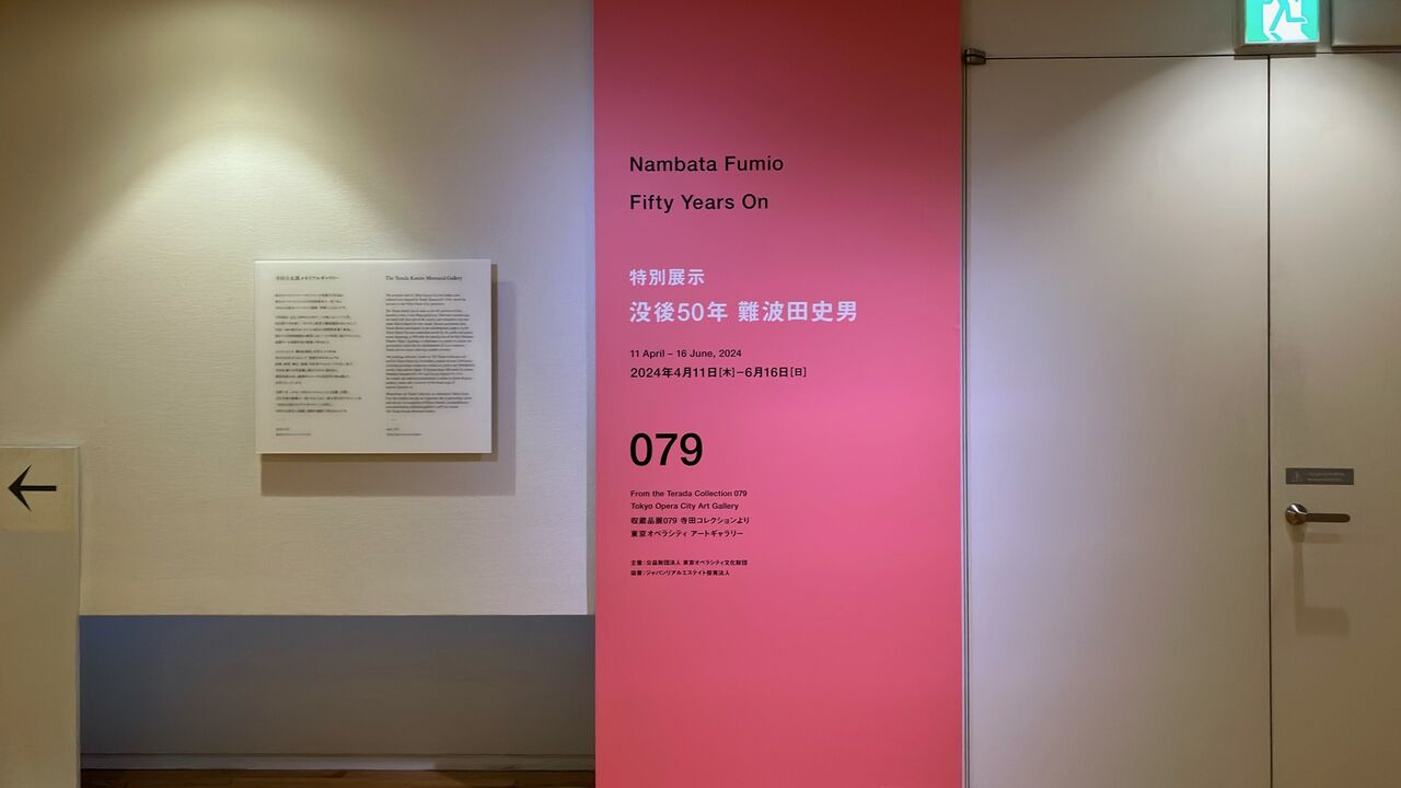 次は階段をのぼって「特別展示 没後50年 難波田史男」展へ。春らしく目をひく蛍光ピンクのリーフレットを手に展示室へと進みます。