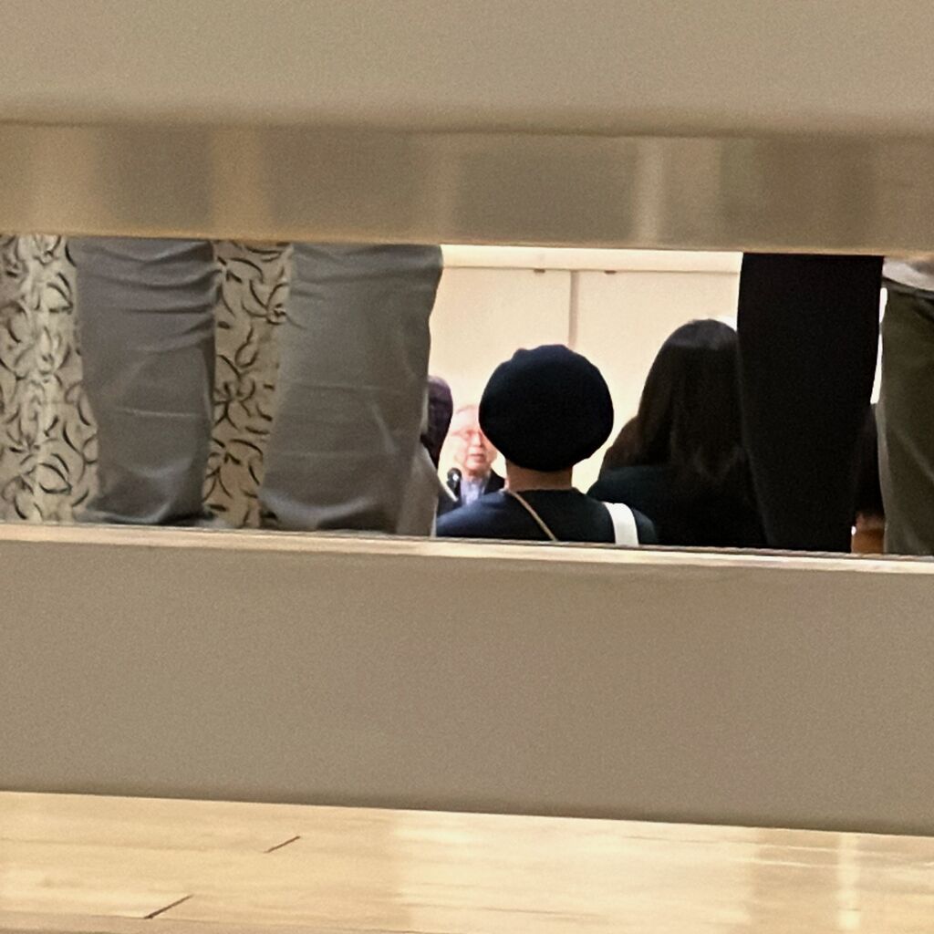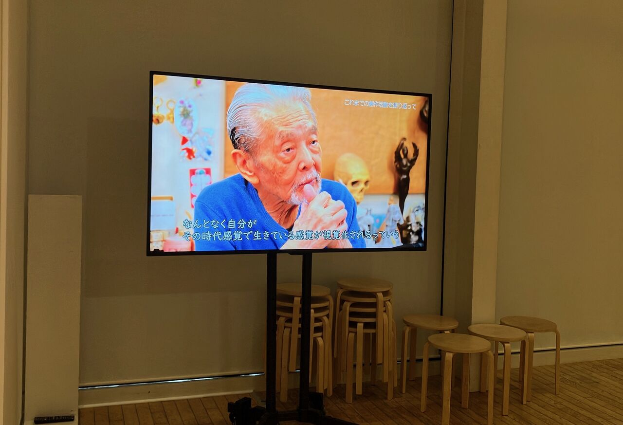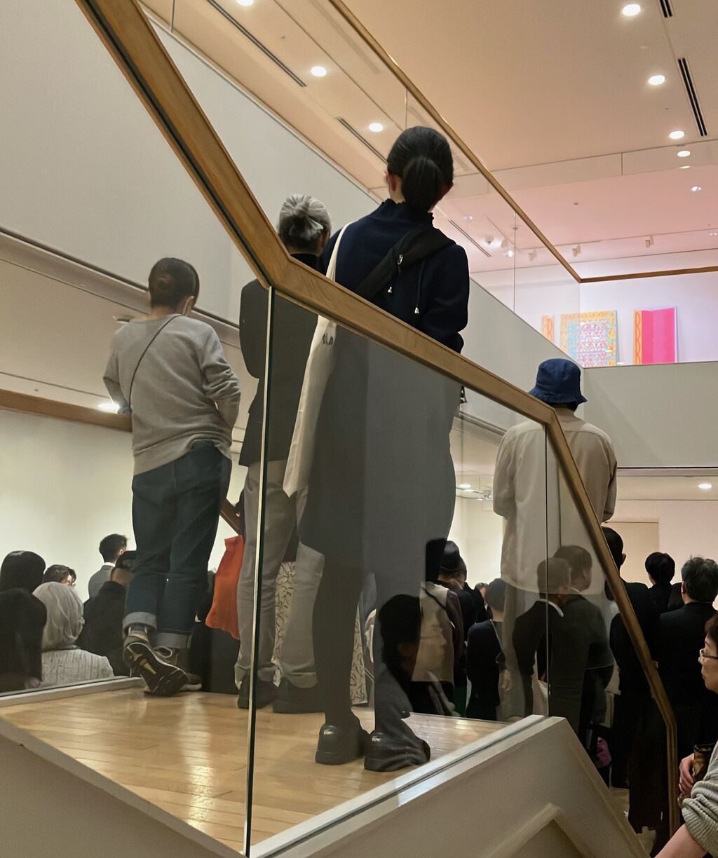 90歳を過ぎたとは思えないシュッとしたお姿で手短に感謝を述べられた宇野先生、「自分はよく(史男先生と)似ていると言われていたから、彼も生きていたらこんな感じだったと思います」と会場の空気を和ませてくれた武男様、「難波田史男さんの繊細で素晴らしい作品を拝見しました」とバトンを受け継ぐように挨拶を始められた大城様。3人の挨拶が終わると、スタッフの方の手により展示室の扉が開けられ、なだれ込むように人が入っていきました。