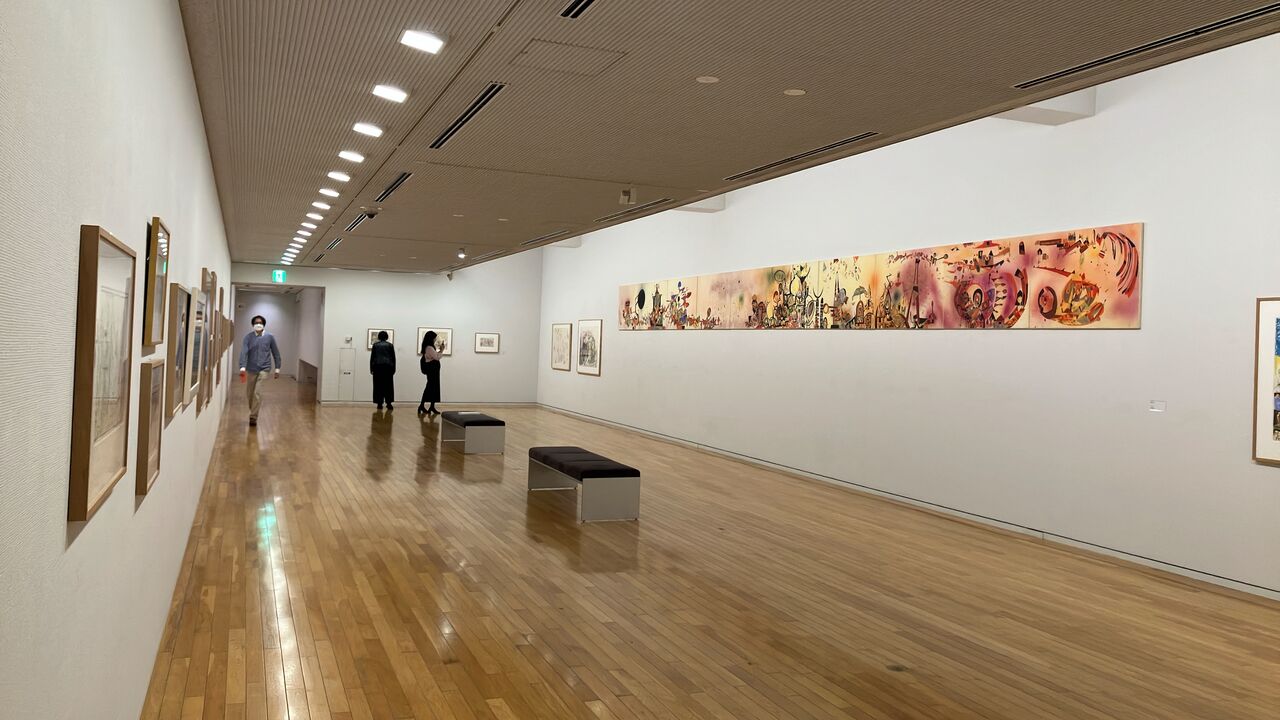 300点近い史男作品を収蔵するオペラシティの寺田コレクションから厳選された作品群が紹介されている今回の展示。広々とした展示室内では、制作年や色味、テーマに沿って作品が配置されていました。難波田武男様は開会式の挨拶で史男先生の作品について「音楽が流れてくるような作品」とおっしゃっていましたが、展示室ではまさにそうした意識の流れ、時間の流れのようなものが表現されていたように思います。