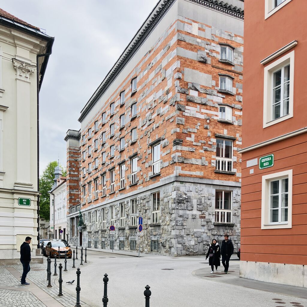 首都であるリュブリャナ(Ljubljana)はコンパクトな街で、徒歩圏内で回れてしまう大きさです。街には川が流れ、中心の広場にはスロベニア出身の建築家プレチュニクが計画した3本橋があり、少し離れたところには国立大学図書館があります。彼の建築は、記憶にある限りプラハにある聖心教会しか訪れたことがなく、随分特別な建築だな。という印象が残っていました。