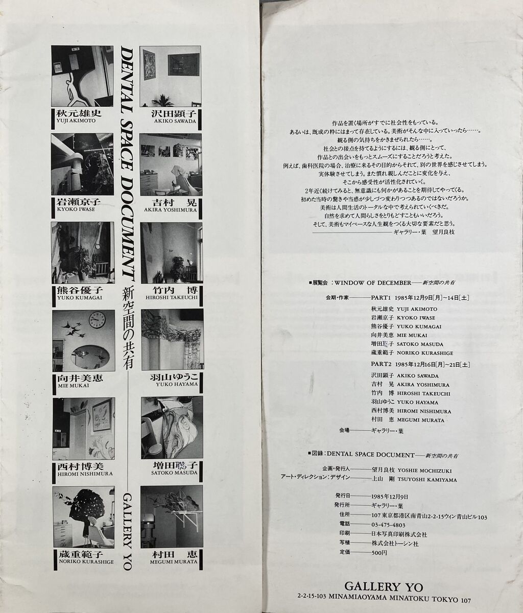ギャラリーに戻ろう。銀座の建物は変化が激しいなかでもまだ残っている。通りに面した2階には搬出入に使ったドアがまだあった。思い出せば1階の青汁を売るお店は近所の画廊のオーナーが二日酔いのためによく利用していた。青山のスペースはホンダ本社ビルの裏手にあたる。道路側のガラス壁面から展示風景が見られ、多くの作品が明るくなったような印象がある。また、熊谷優子、増田聡子、向井美恵、松井智恵ら女性作家も多くなったようだ。望月さんは今も「松井智恵の追っかけ」を自認している。振り返ると、ギャラリー葉は広い空間とはいえないが、コンパクトで作家にとって使いやすい場だったのではないか。その流れで80年代の実験的な発表を支えてきたと言えよう。ギャラリー葉は、青山のスペースを閉じたのち、88年7月から黒田悠子さんのギャラリー21と組み「ギャラリー21+葉」となり、銀座に戻る。現在は世田谷区等々力で「ギャラリー21yo-j」だが、そのあたりを語るには別の切り口が必要だ。