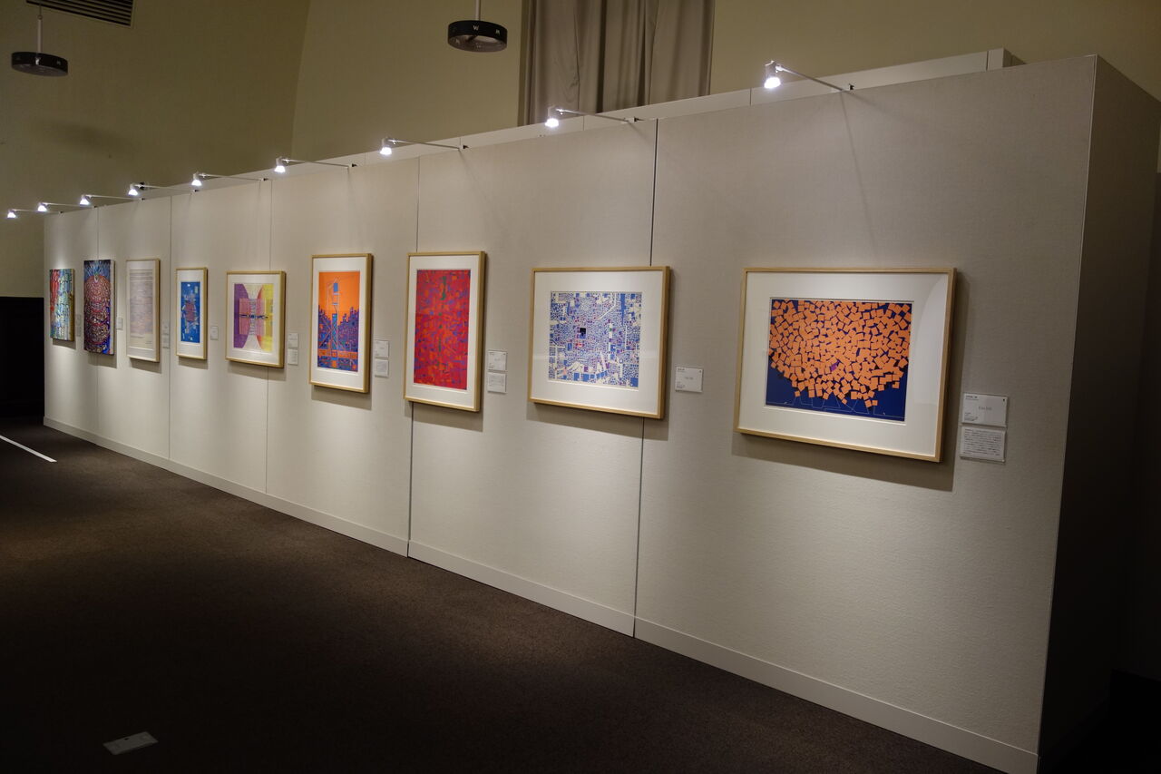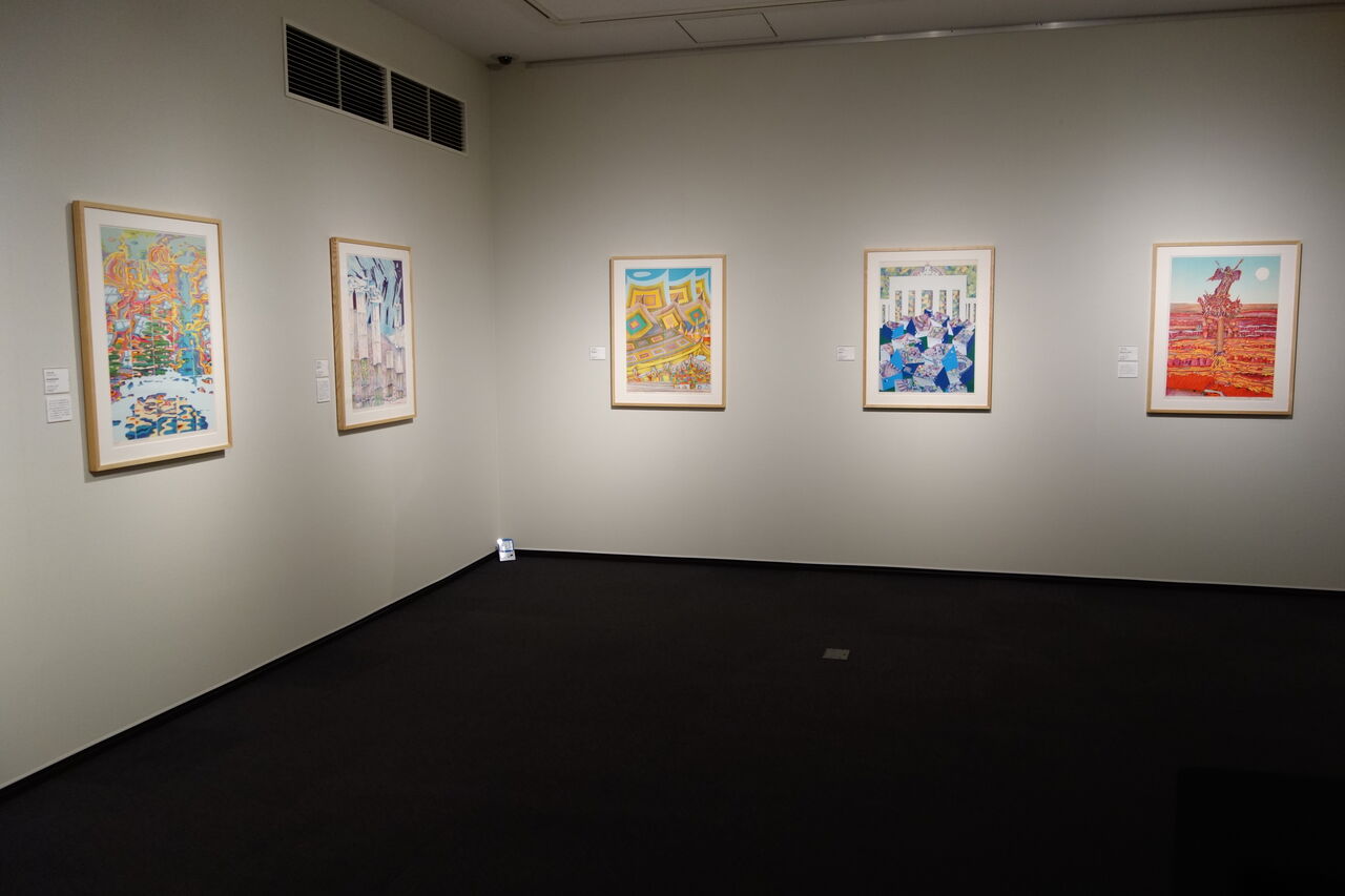 博物館2階の「ニューヨークを舞台にした日本人アーティストたちー木村利三郎作《メトロポリス》を中心に」の展示室では、木村が1960年代前半にニューヨークに渡る前に描いた水彩、1967年から晩年まで手がけた《City》シリーズのうち、1969年から1990年代の作品の一部である6点(後半の展示入れ替えを合わせて8点)と《メトロポリス》につづいて、荒川修作、猪熊弦一郎、白井昭子ら9人の作家の作品が展示されていた。