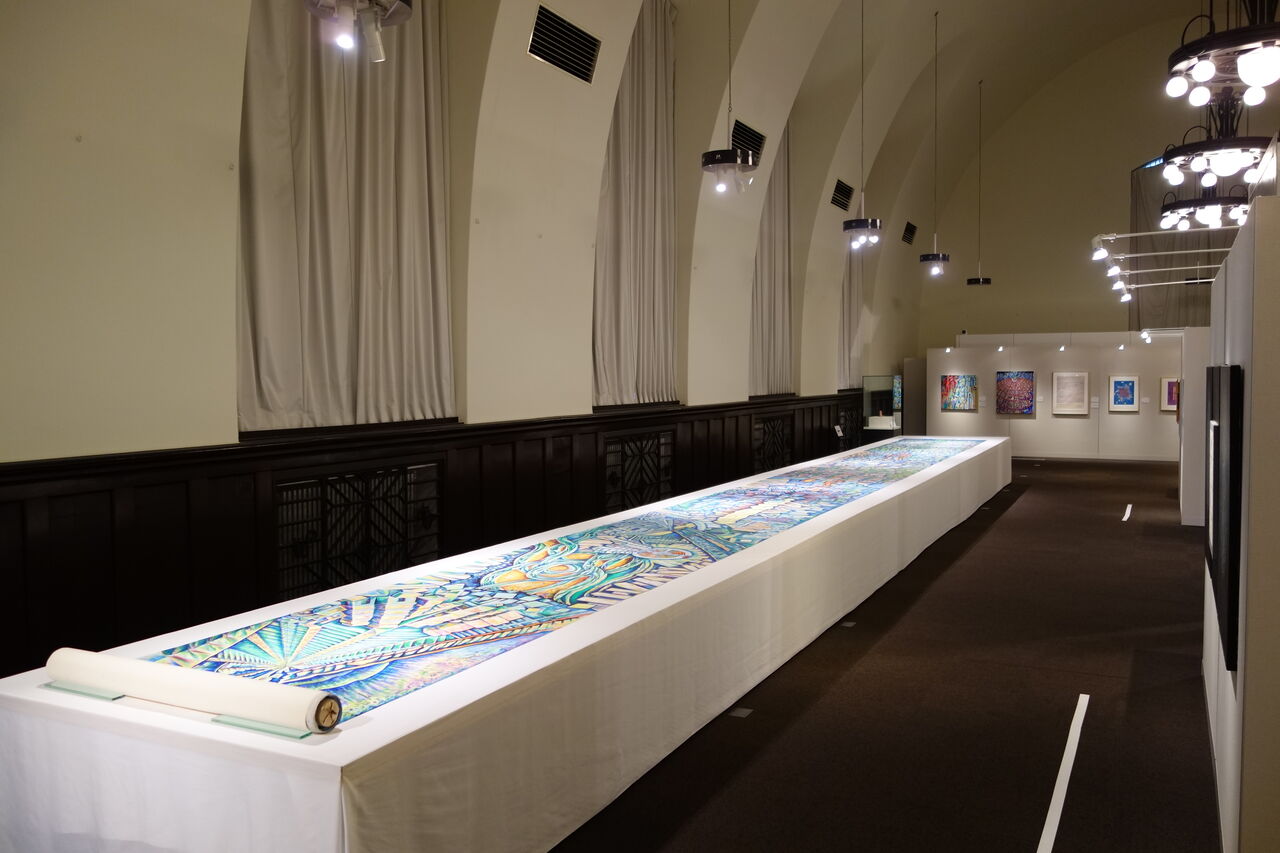 同作品は、長さ28m以上あり、ロール状のキャンバスに描かれた。展覧会前半会期で最初から半分まで、後半会期で半分から最後までが展示されている。キャンバスの中央あたりに鉛筆で線がひかれたり、ところどころに数字が描かれており、ある程度計画的に描かれたことが下書きから読み取れる。