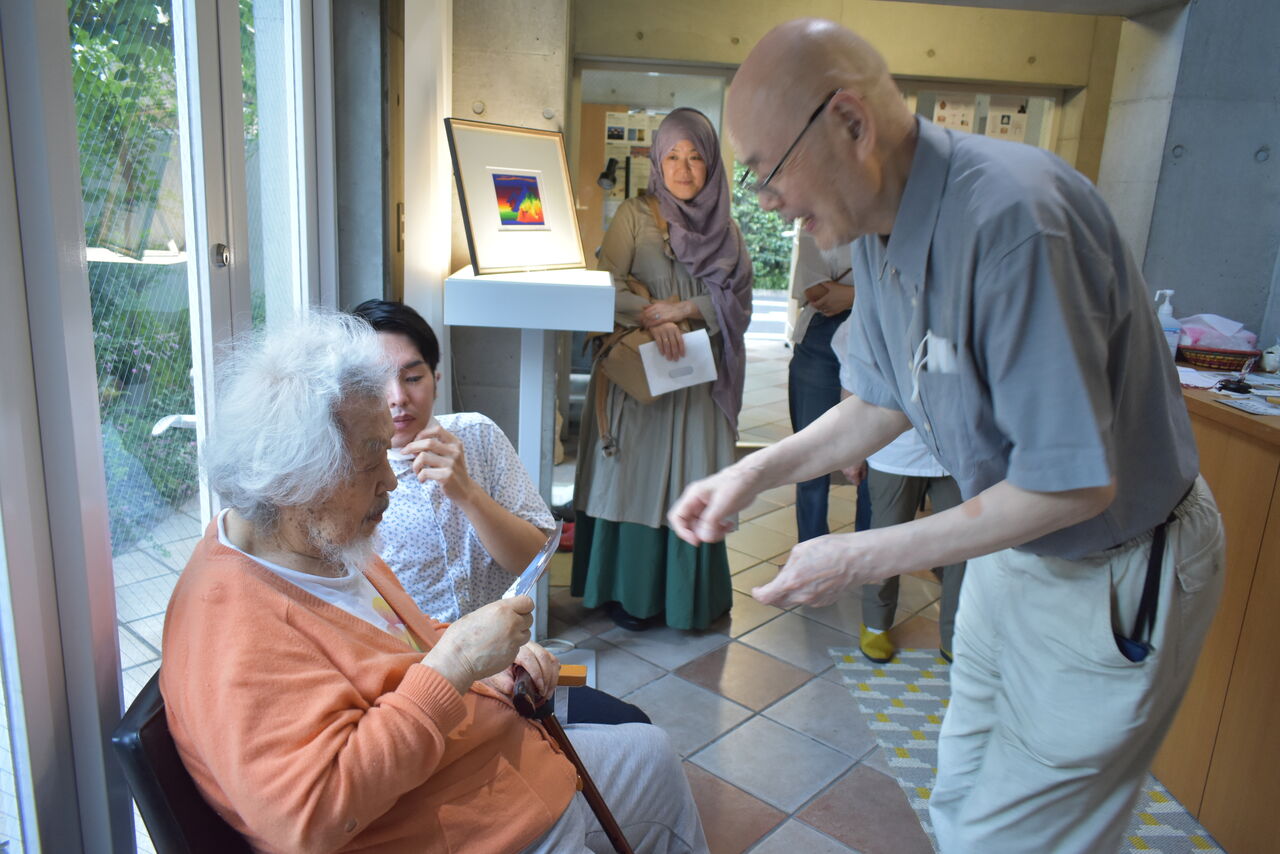 初めて靉嘔先生にお会いするスタッフにとっては感激のひとときでした。