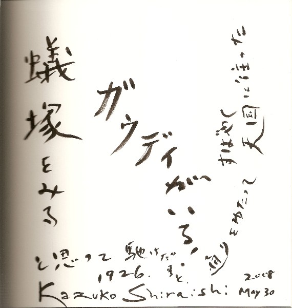 白石さんは細江先生と不慮の死をとげたガウディへのオマージュの詩を即興で書いてくださいました(我が家の家宝です)。