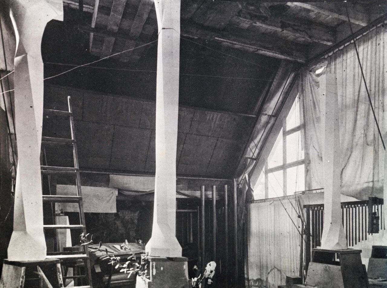 ガウディはエジソンが開発した映画撮影ためのスタジオを真似た工房を作り20分の1、10分の1という巨大な模型を作りはじめる。これを検証するためには大きなスペースが必要だった。まさにそれは映画のスタジオのような入射光がコントロールでき、角度を変えて検証できるような工房をセルデーニャ通りとプロベンサ通りの角に作っている。ここには教区教会の司祭の家もあったが、晩年にはガウディが仮眠するための部屋すら設けられた。現在では半分以上がスペイン戦争の時に壊されてしまっているが、1926年今井兼次さんが初めてガウディを尋ねようとサグラダ・ファミリア教会を訪れた時この場所に行っている。