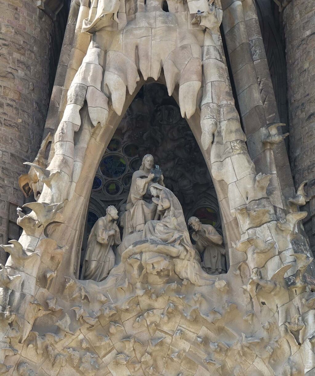 一番寄付の集まった1897年には現場で左官9人、 人夫22人、 石工24人、大工16人、そして何と彫刻職人は41人が働いていた。彫刻職人はアーティストも加わっていたらしいが、基本的に検証に検証を重ねるという方法で制作を進めていたガウディには個性は不要だったので、職人が当たっていた。パーソナリティーが出るアートは不要、実証主義だったのだ。