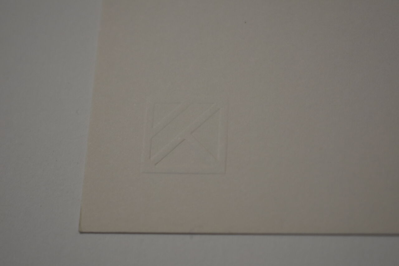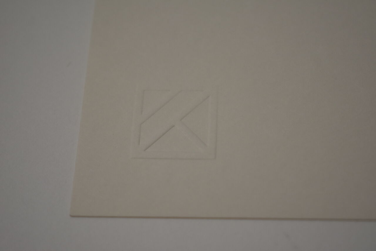 エンボス(空押し)は刷りを担当した久利屋グラフィックのマーク。こちらの作品の見積り請求、在庫確認はこちらから