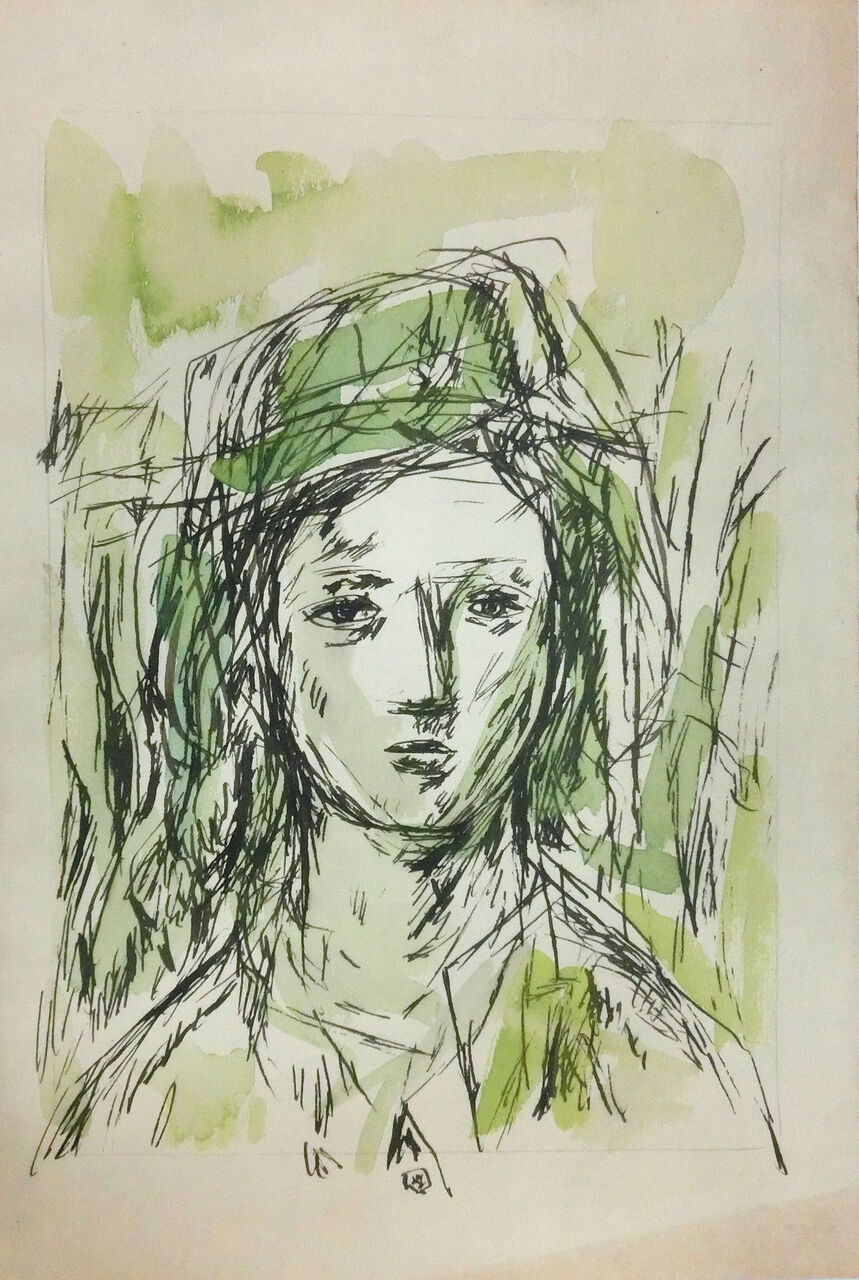 1942年の油彩《コップを持つ子ども》と素描を中心に、肖像画に焦点を当て19点の作品を紹介。