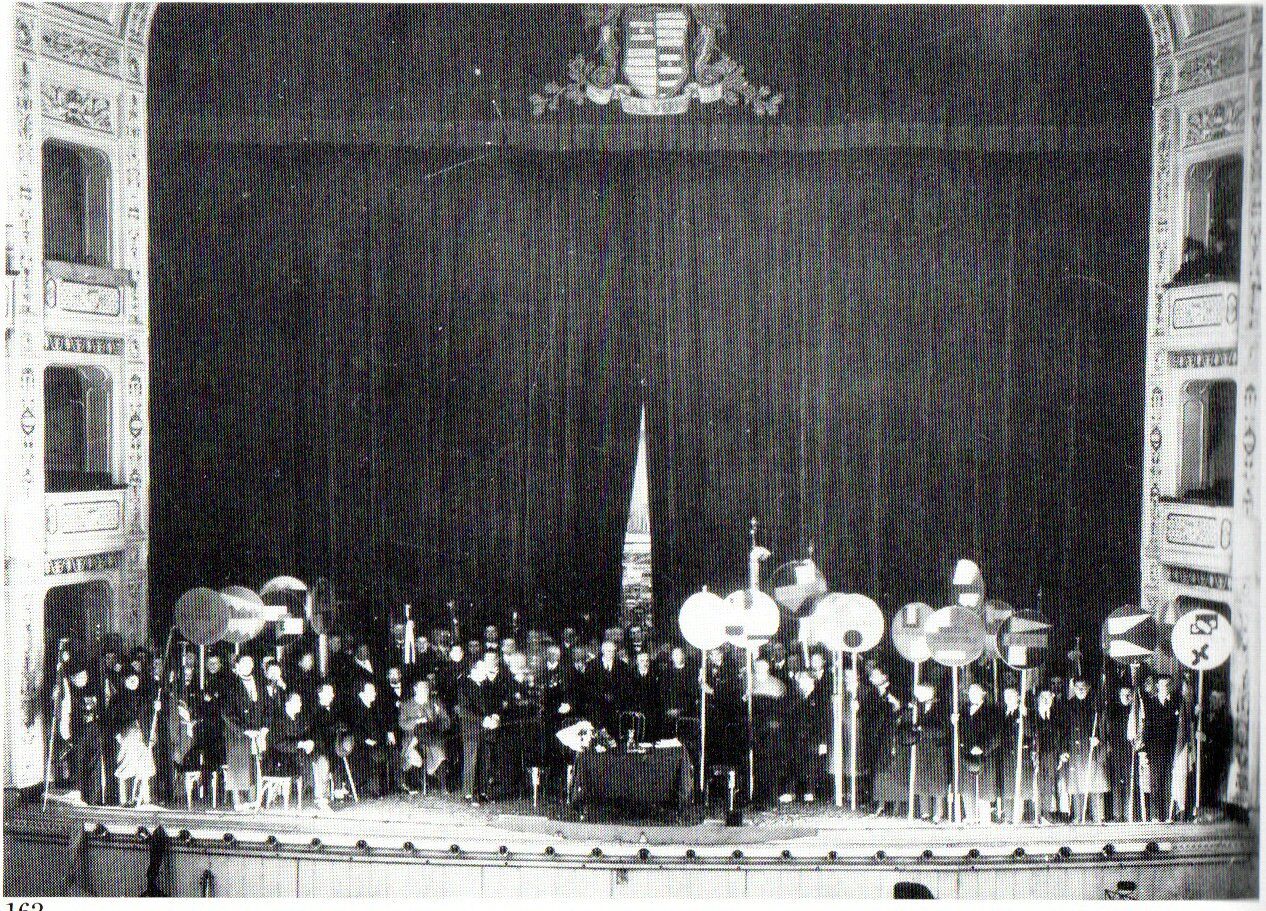図2:マリオ・カスタニェーリ(1892-1940)撮影、「第1回未来派全国会議Primo Congresso Nazionale Futurista」の際、ミラノのダル=ヴェルメ劇場で開催された「イタリア性の促進者マリネッティに捧げる全国式典」風景、1924年。