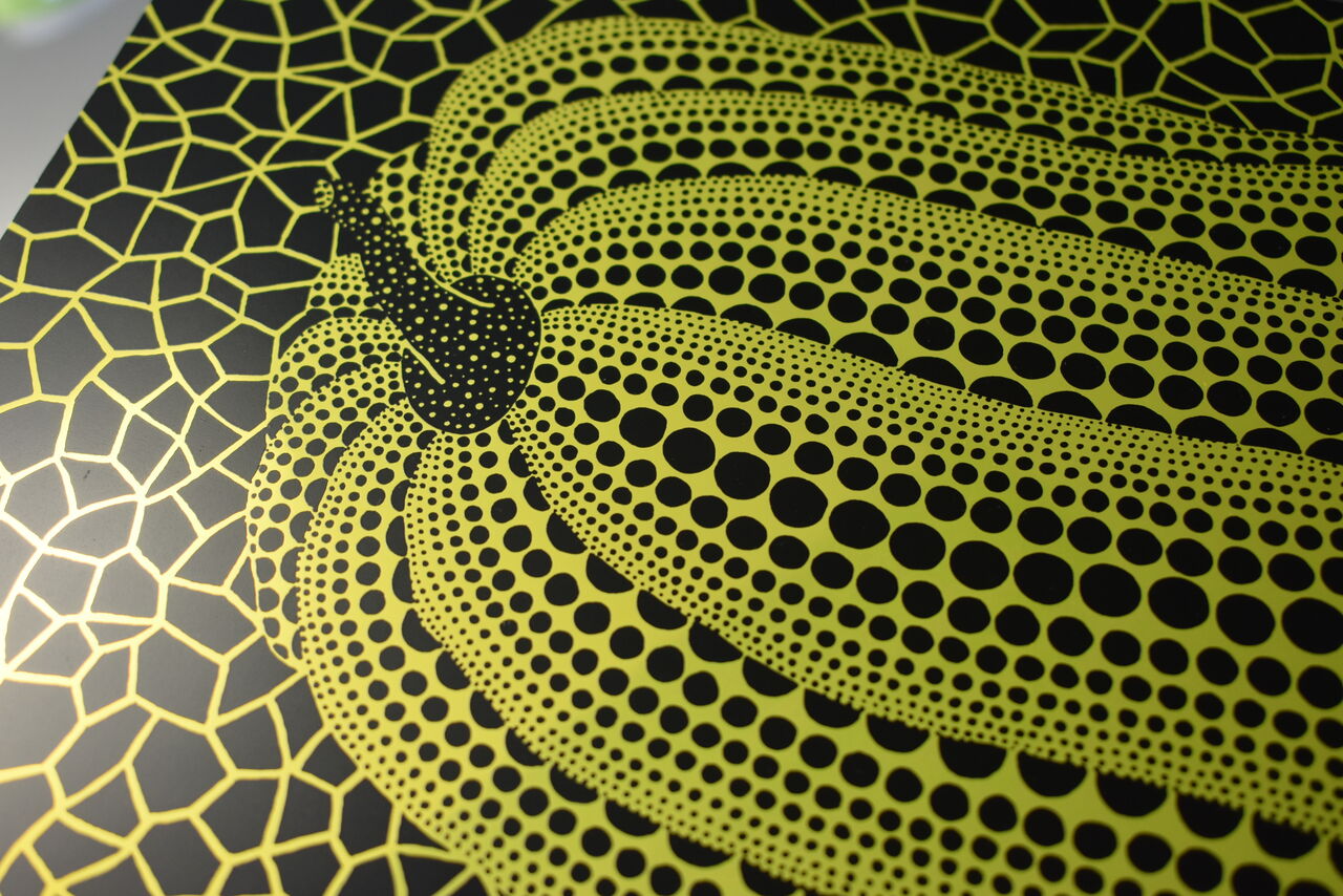 本日ご紹介するのは石田さんが手がけた草間彌生の《南瓜B》(ミラーフィルム)です。