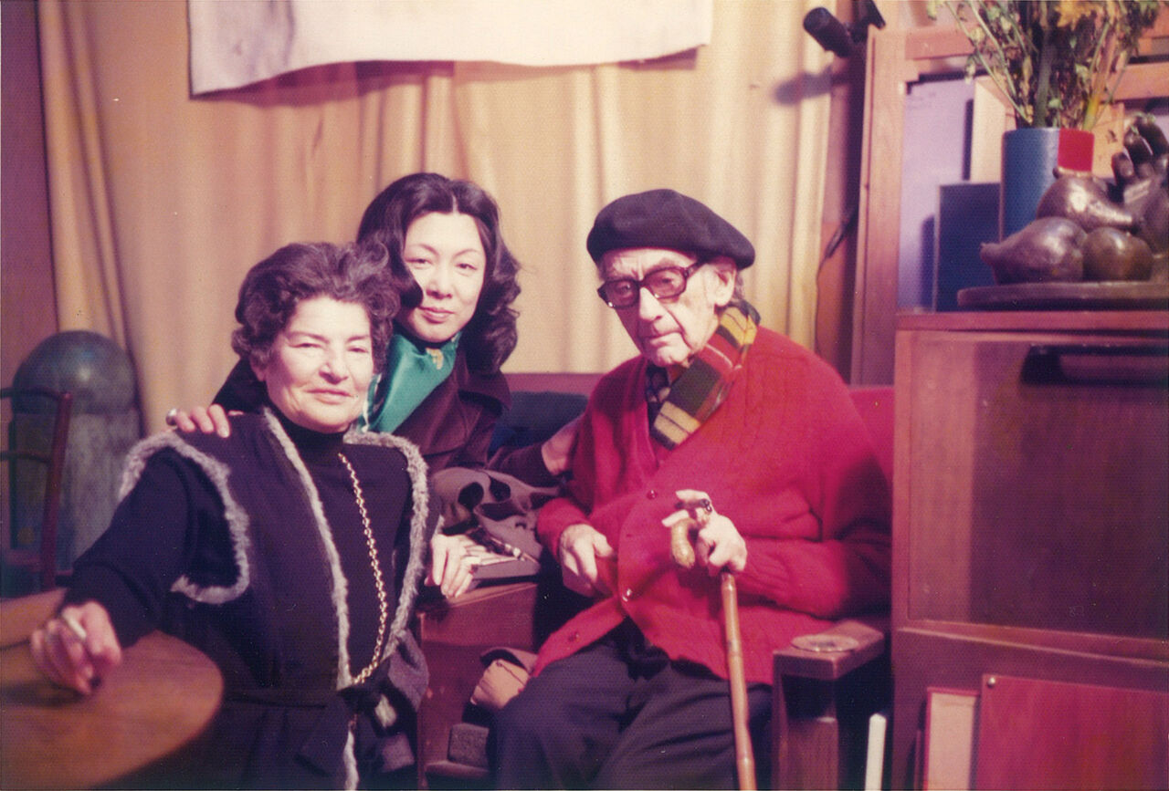 ジュリエット・マン・レイ(左)、宮脇愛子(中央)、マン・レイ(右)