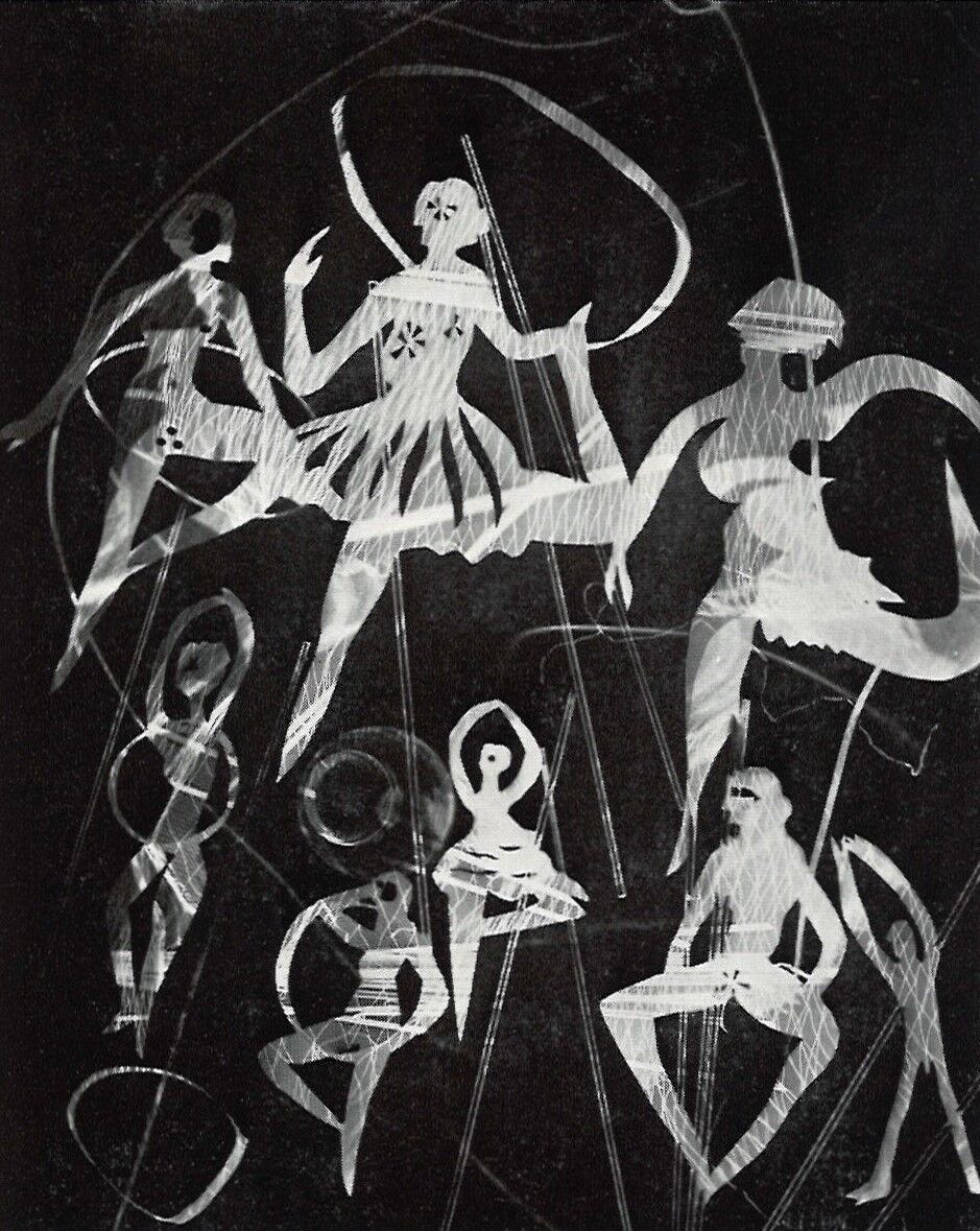 続いて、この「第4図」のバレリーナのようなイメージが、既存のイメージを切り抜いた型紙によって得られたものではなかった場合について、さらに考えてみたい。型紙でなければ、当然、何らかの既存の物体を用いたことが推測される。だが、留意しなければならないのは、この「第4図」に見られるバレリーナのようなイメージは、その輪郭がほとんどぶれることなく定着されている点である。