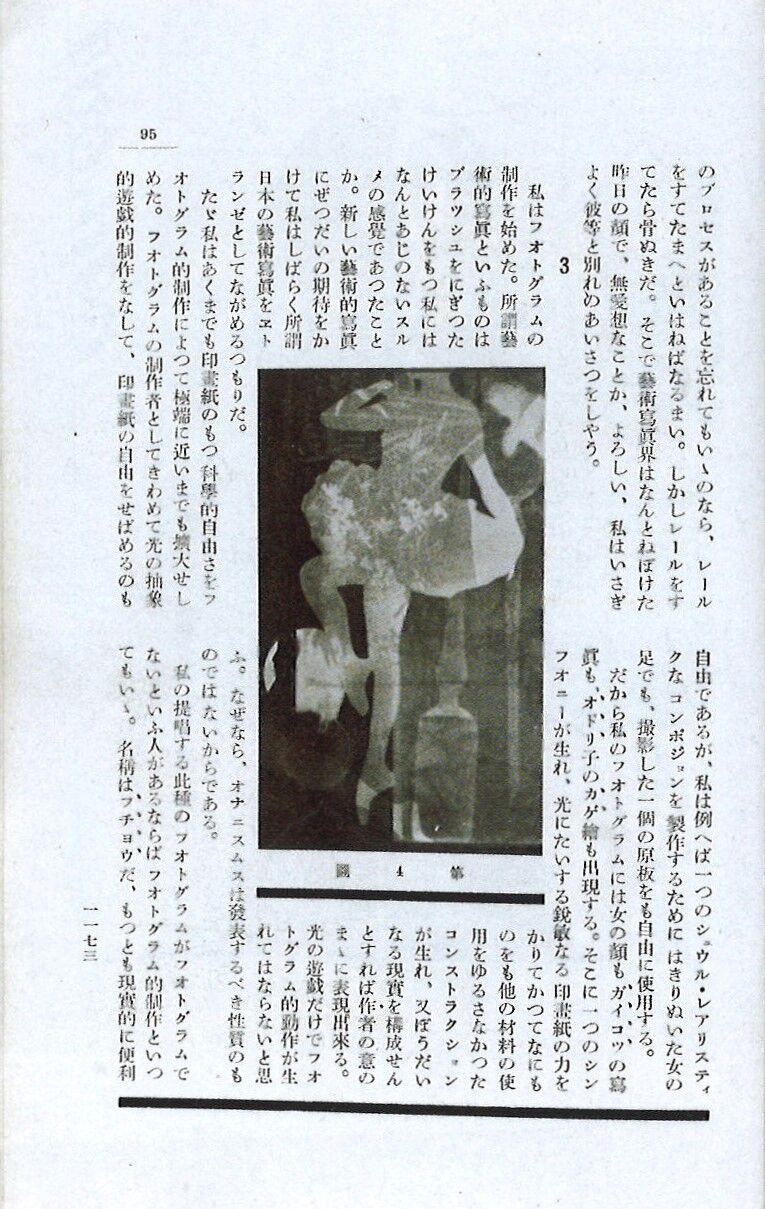 ここで、「フォトグラムの自由な制作のために」の文章の中に、これらの3種類の方法と関連する重要な記述を見つけることができるので、その記述を紹介したい。まず、「3」についてであるが、95頁・下段(fig.5)に、以下のような記述がある。