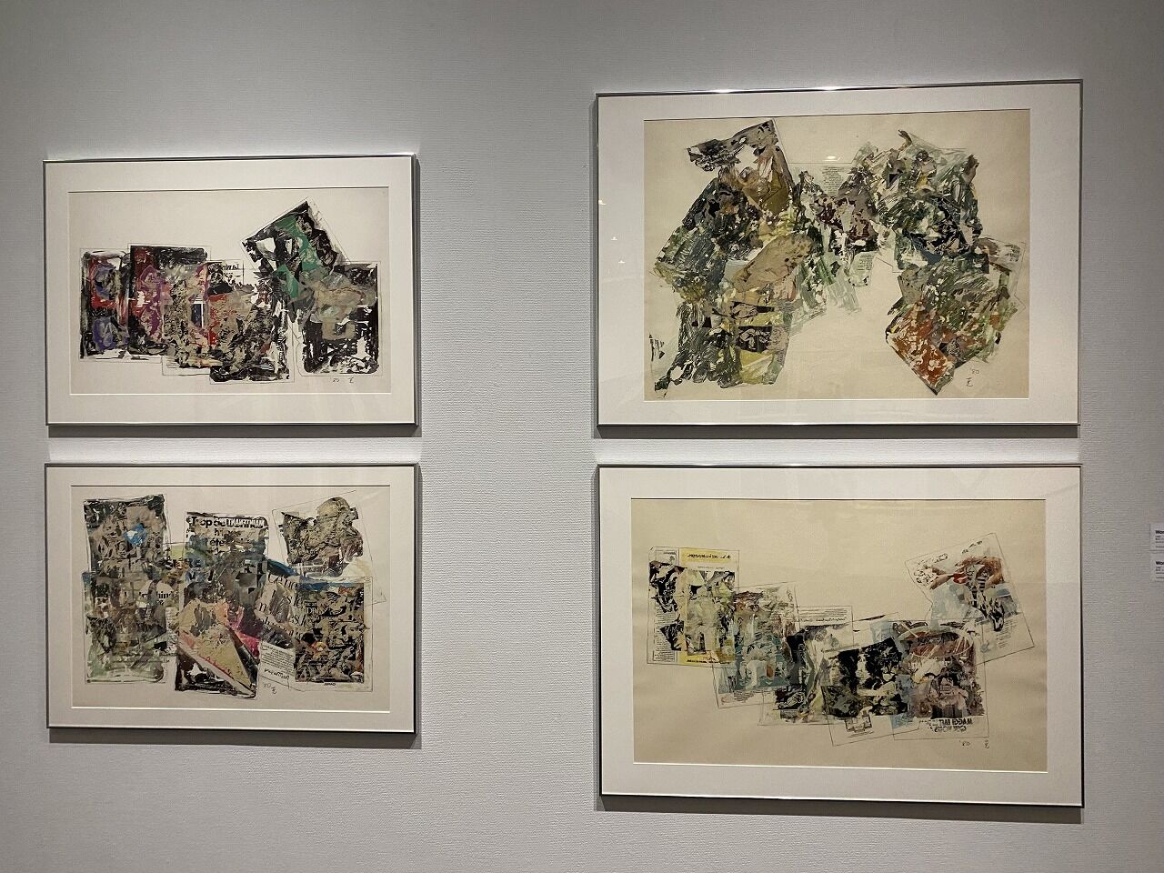 1980年の転写とコラージュを組み合わせた作品は、海外の雑誌に透明のメディウムを塗ると、印字されたものが剥がれてくるので、それを別の紙に転写したという面白い作品もあり、転写やフロッタージュの実験的な試みがいくつも見られました。
