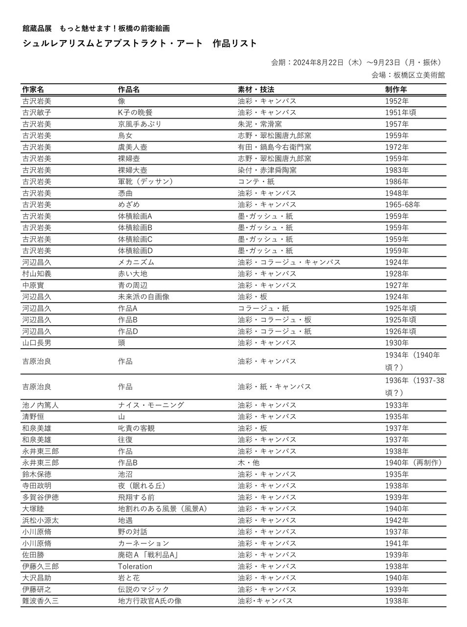 ●「もっと魅せます!板橋の前衛絵画シュルレアリスムとアブストラクト・アート」