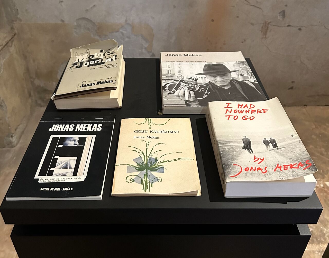 入り口左手には受付があり、右手にはジョナス・メカスに関する資料が