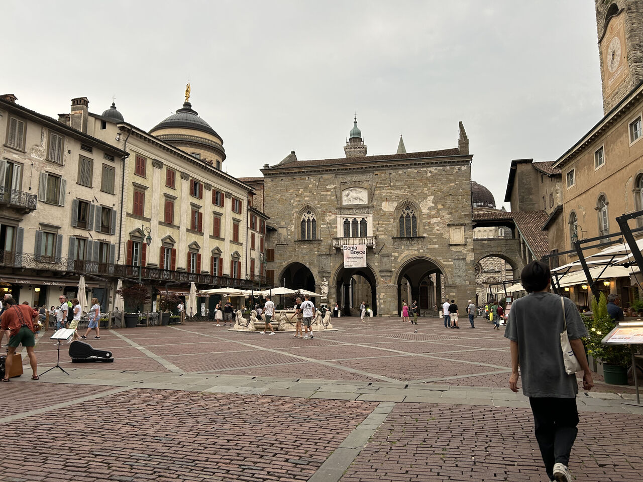 1)ベルガモにて、ル・コルビュジエが「ヨーロッパで最も美しい広場」と称したというヴェッキア広場