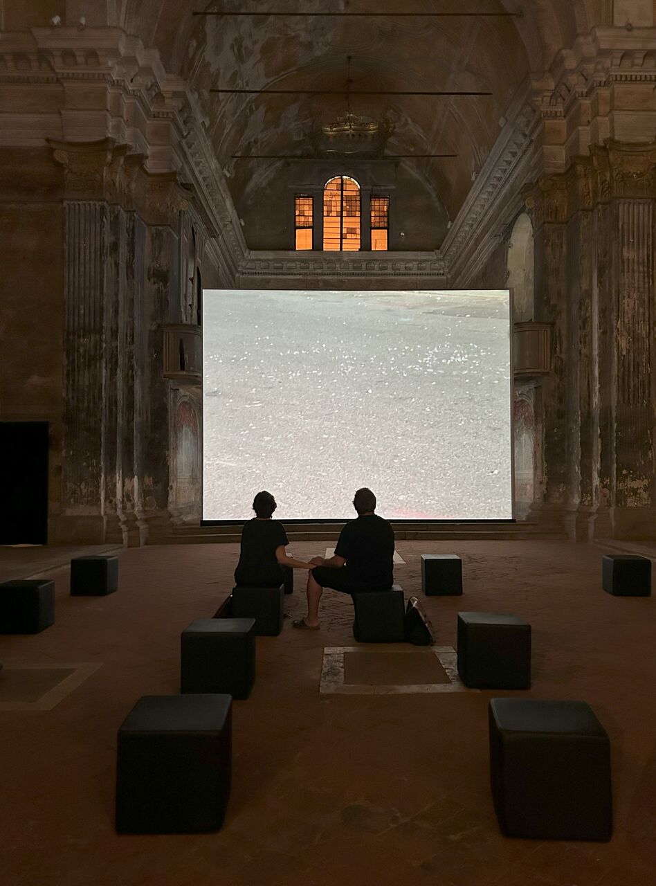 [1] インスタレーション上映が行われたダンテ・アリギエーリ協会のホールは、イタリア国籍を求める移民に語学の卒業証書を発行することを許可された唯一の機関なのだそう。
