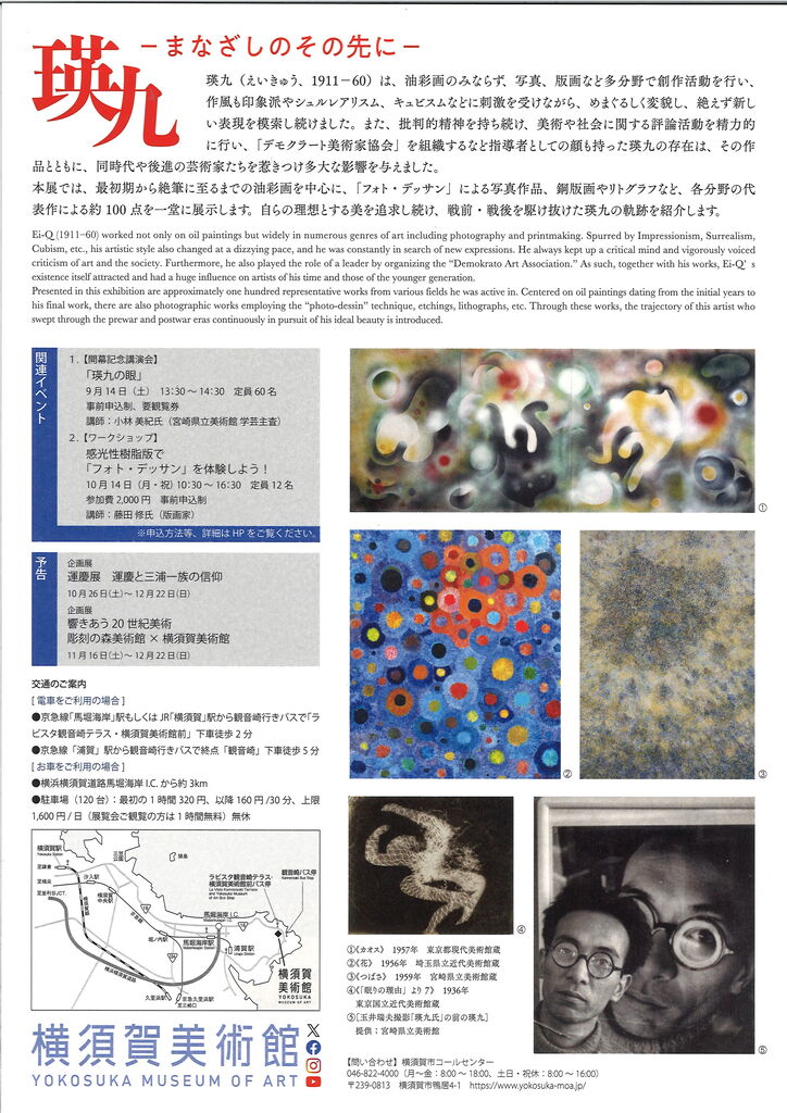 少し遠いですが、横須賀美術館の瑛九展も欲張って楽しんでください。