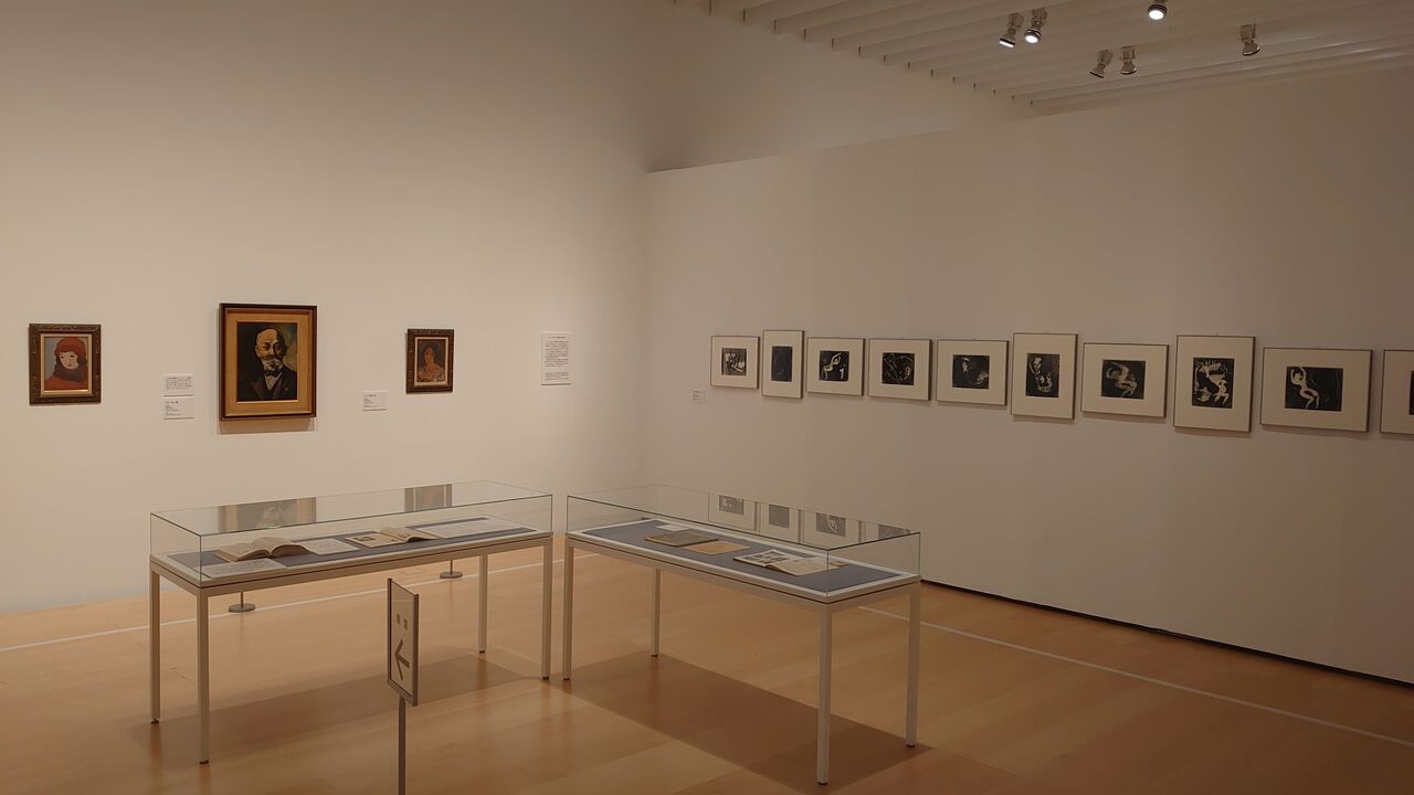 長々と書いてしまいましたが、本展は、最初期から最晩年までの油彩画を中心に、フォト・デッサン、エッチング、リトグラフ、コラージュ、水彩、資料類あわせて121点、コンパクトではありますが回顧展の名に恥じぬ作品を展示しております。
