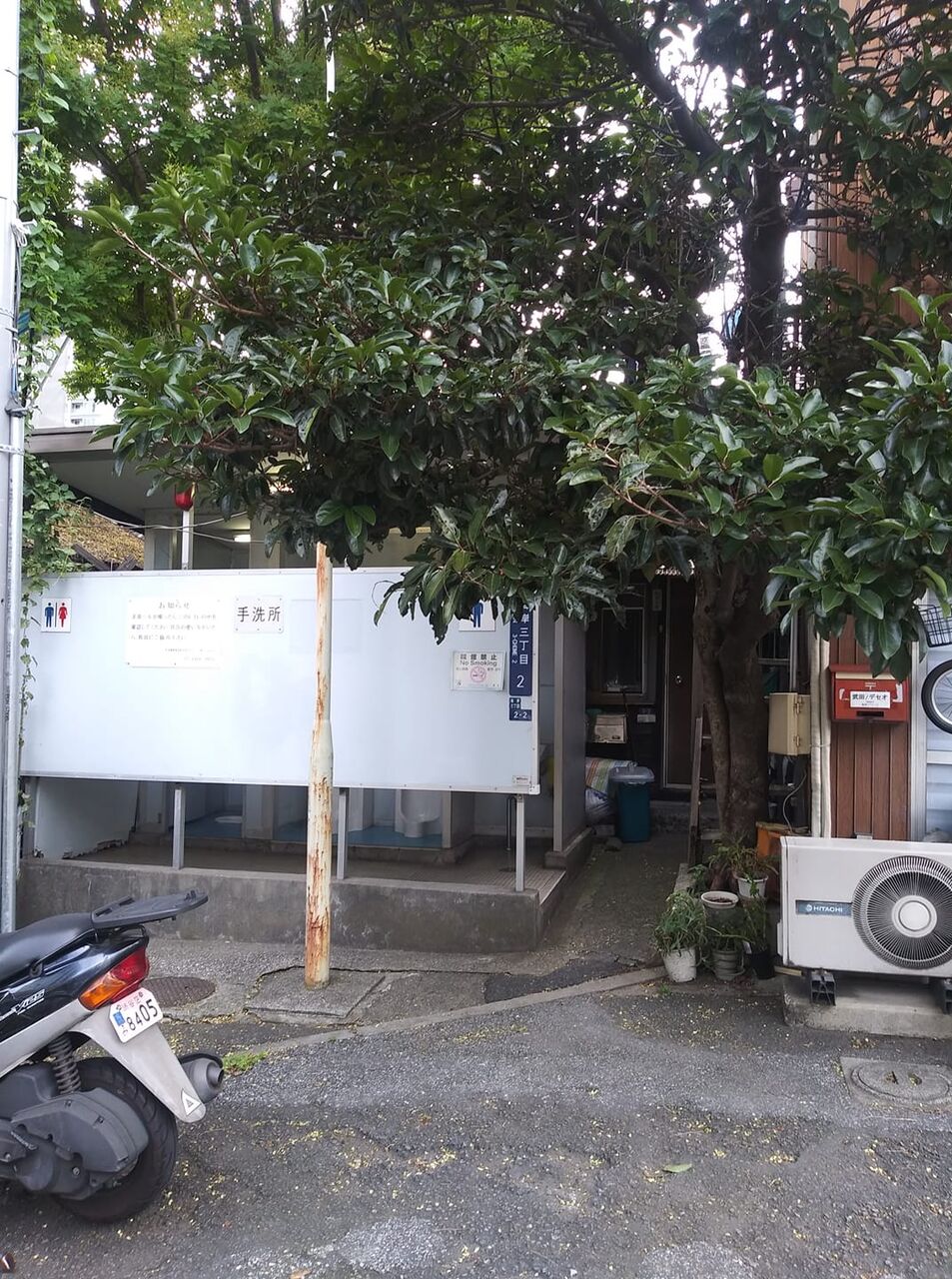 芝浦運河の浦島橋たもと 昨日からの気懸り こんな所に民家 何故? 何度来て見ても不思議 しかも公衆便所!の出入口すぐむこうに玄関 歴史のせい?