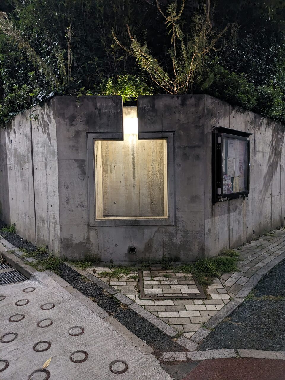 我がご町内 豪邸の常夜灯 コンクリート製ランプカバー=巨大ホヤ(火屋) 一坪程の空間を充たす明かり 仕切り無しなので昼間は子供たちが遊んだり? あの中にうずくまって瞑想する自分をちょっと幻視 ブキミ