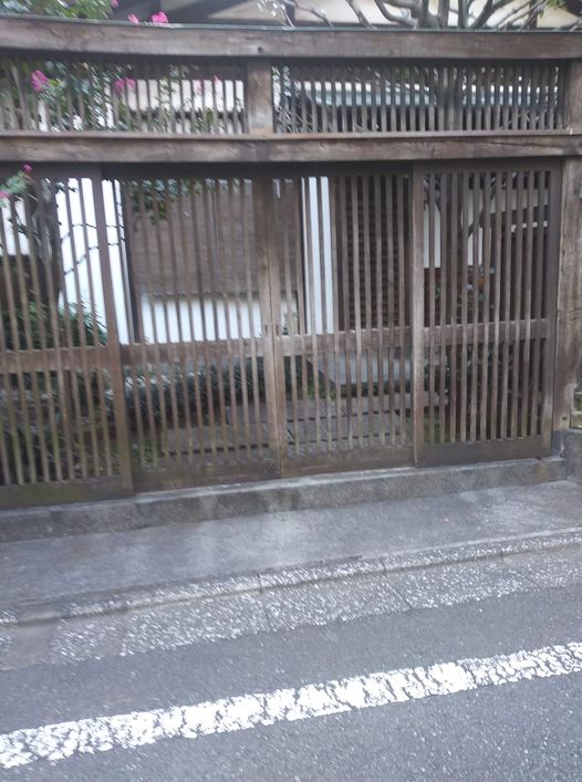 自由学園明日館まで徒歩2分 宮崎黄石氏邸 ちりひとつない冠木門の内外 清浄に保たれた連子格子から透けて見える滔天・龍介・(柳原)白蓮の幻影  (黄石氏は滔天の曾孫)