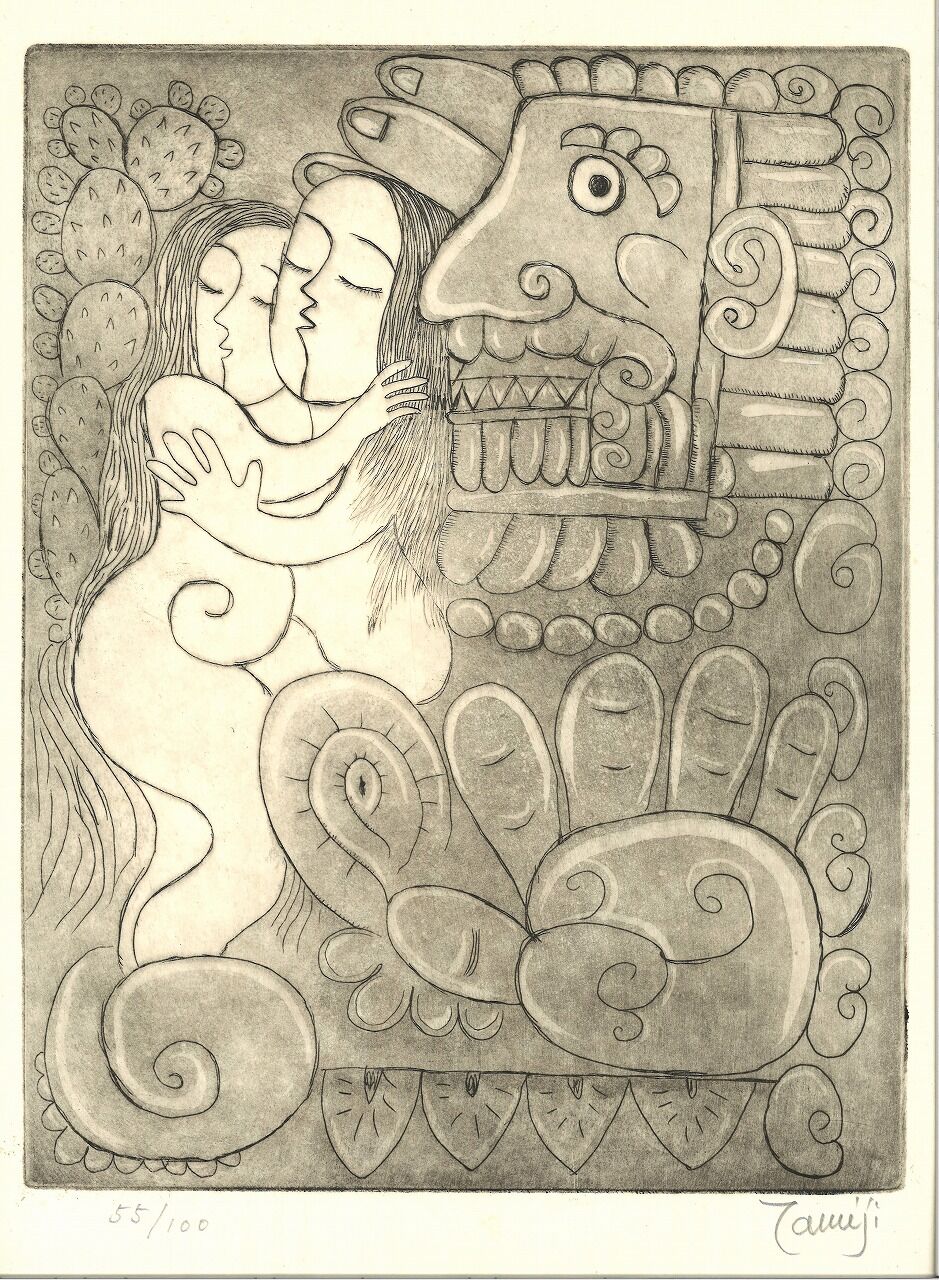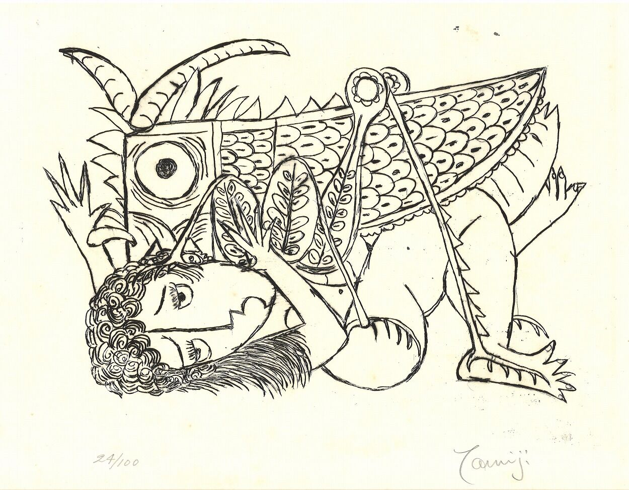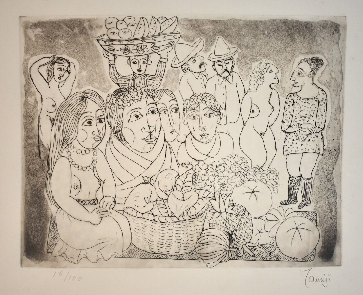 同じく静岡県の金谷に生まれた洋画家・北川民次(1894-1989)は、1914年に渡米後、1923年にメキシコへと渡り、メキシコの風土や人々を描く独特の画風で作品を制作し、また美術教育者としても活動しました。美術評論家の久保貞次郎が版元となり、生涯に400点近い版画も制作されました。